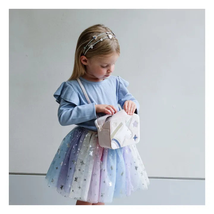 - Layers of pastel coloured rainbow tulle embellished with metallic silver unicorns and stars