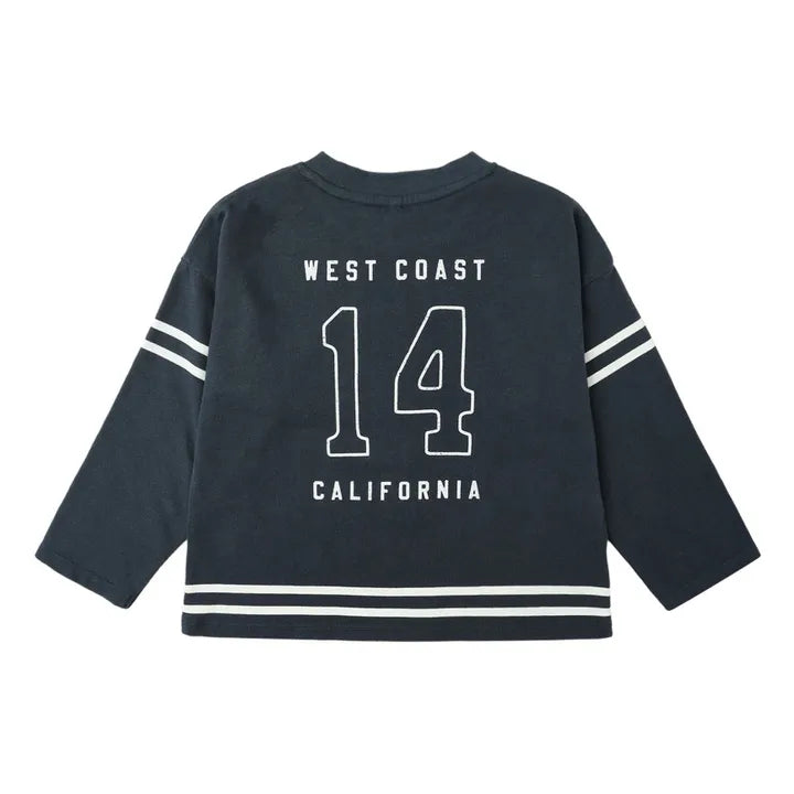 - Our boxy-fit Camden Long Sleeve Tee is a seasonal staple, featuring contrast neck ribbing for a cool, classic look. Shoulder snaps included on sizes 0-3M - 18-24M for easy changes.