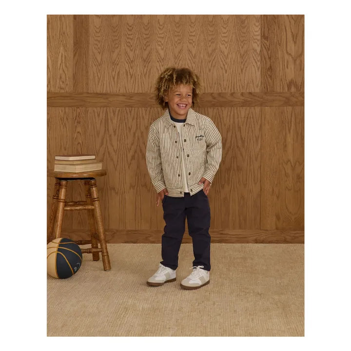 Featuring our 'navy pinstripe' print on our 'natural' denim.