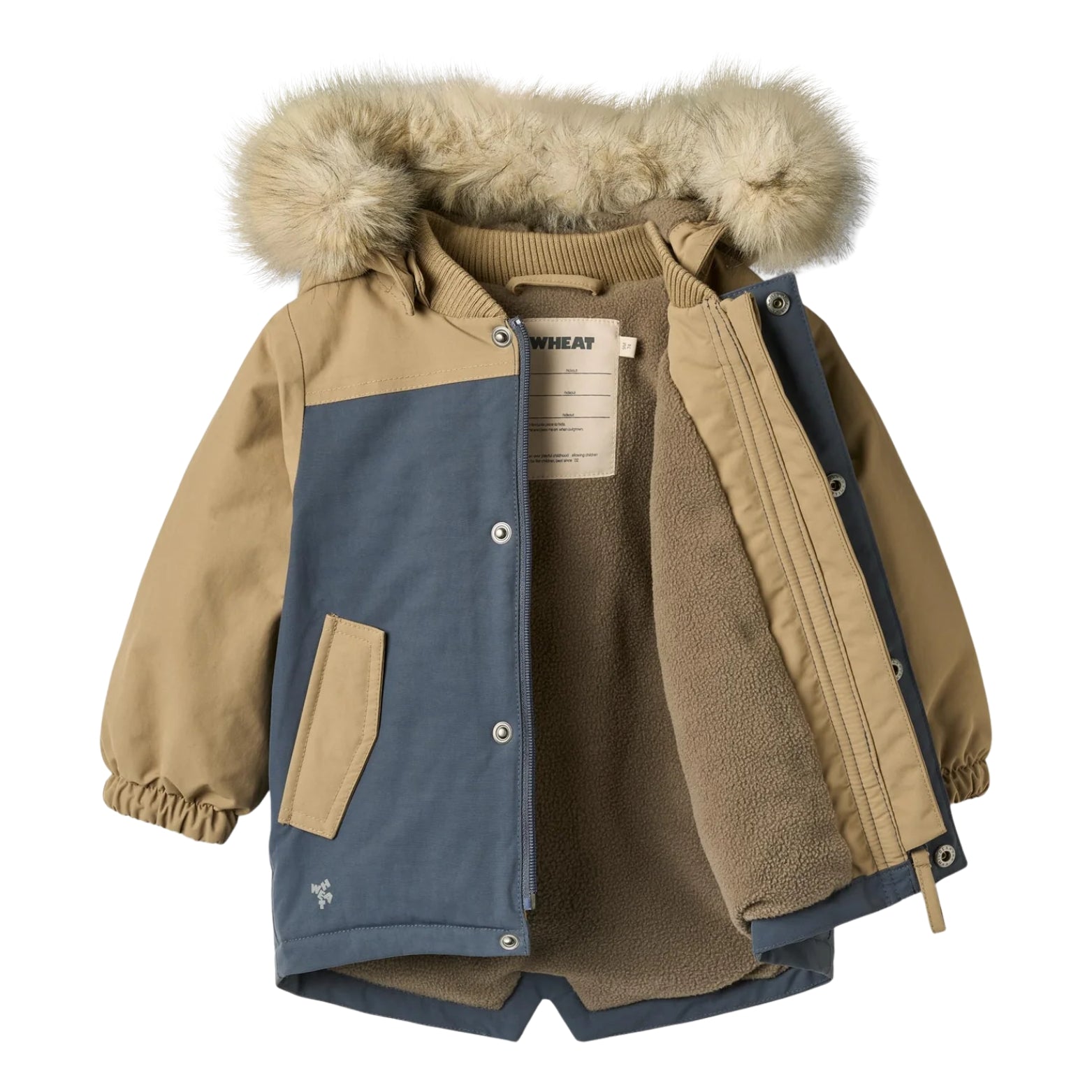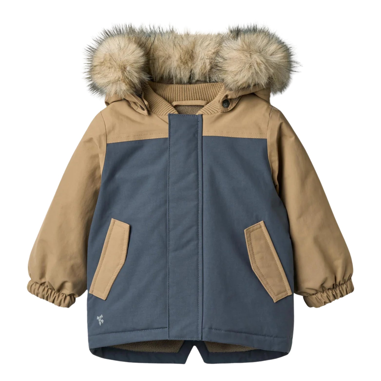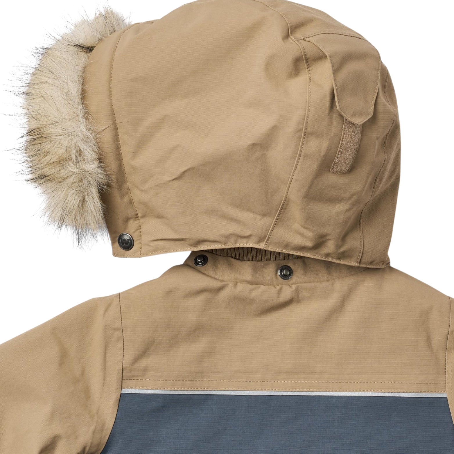 Keep them cozy and comfortable in the ski jacket from Wheat. The baby design is fitted with a double-zipped fastening on the front and a plush hood for extra warmth, finished with a colorblocked motif.