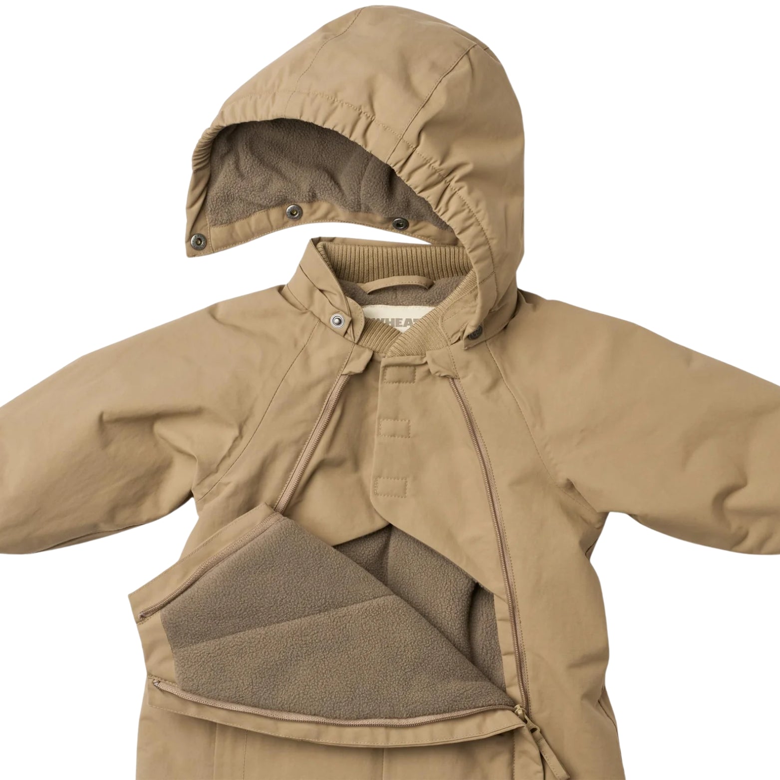 Keep them cozy and snug in the snowsuit from Wheat. The baby design is made from breathable and waterproof fabric, complete with an elasticated waistband, a hood, and a soft fleece lining for optimal warmth.