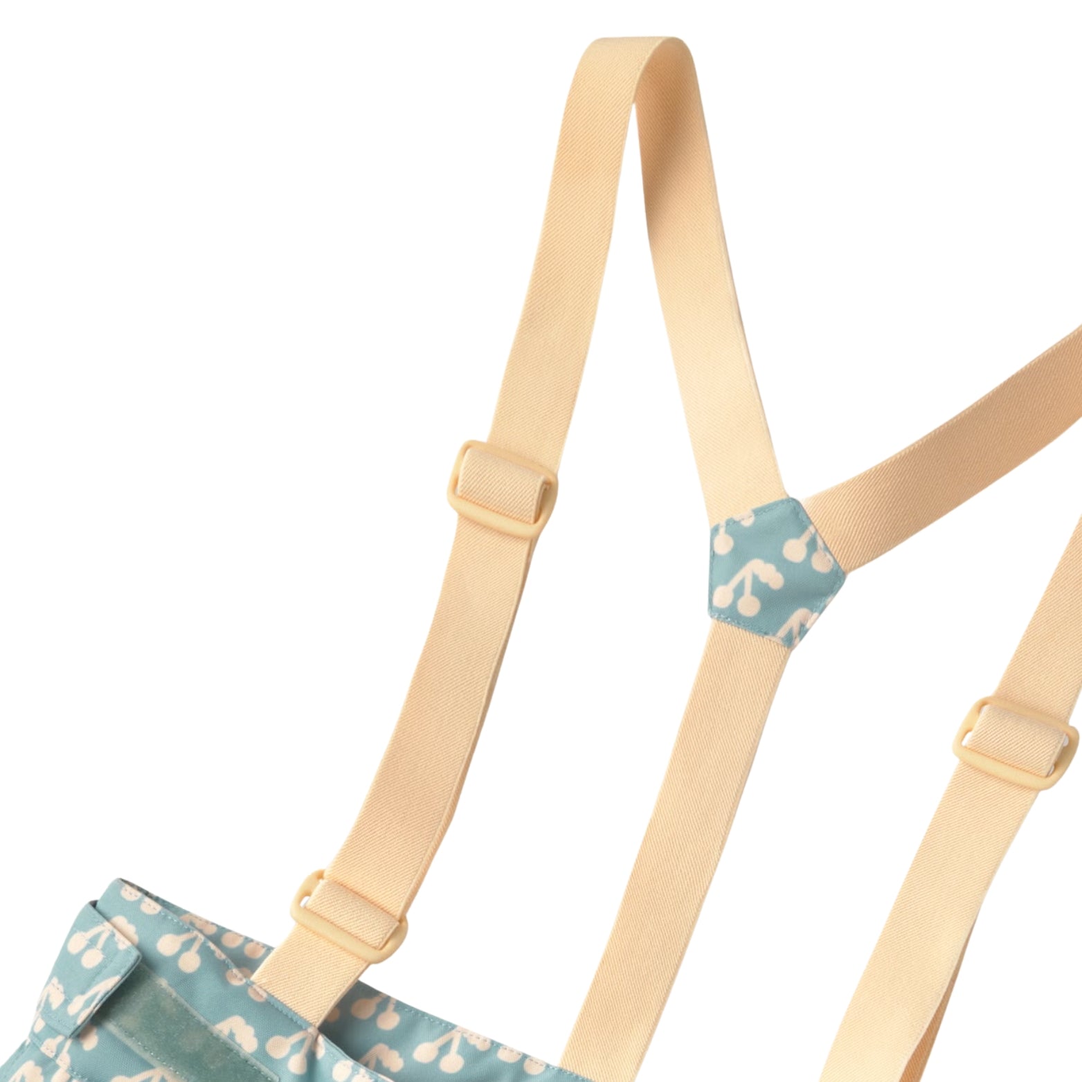 Padded and fully fleece-lined for extra warmth, these Cherries print snow pants are built for winter fun. They feature a zip fly with snap closures, integrated snow gaiters with anti-slip bands, and ankle zips for easy fit over ski boots. The elasticated waist with Velcro tabs ensures a perfect fit, while elastic shoulder straps add extra support. Reflective strips offer added safety on snowy days. Made from wind- and water-resistant fabric, ready for any chilly adventure.