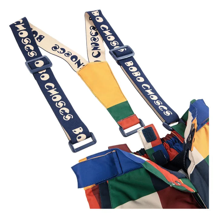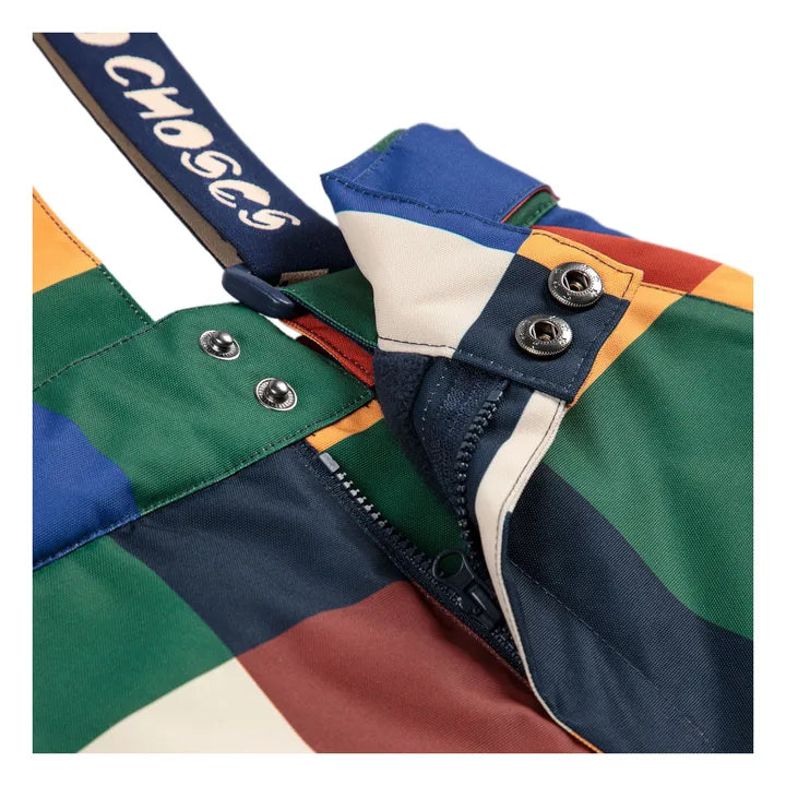 Multicolor pants. Designed with regular crotch, adjustable straps, adjustable waistband, front snap fastening, front zip fastening, elasticated bottom, elasticated waistband, slash pocket, heavy padded, adjustable bottom, beltloop, long length, recycled lining and relaxed fit. Made in China.