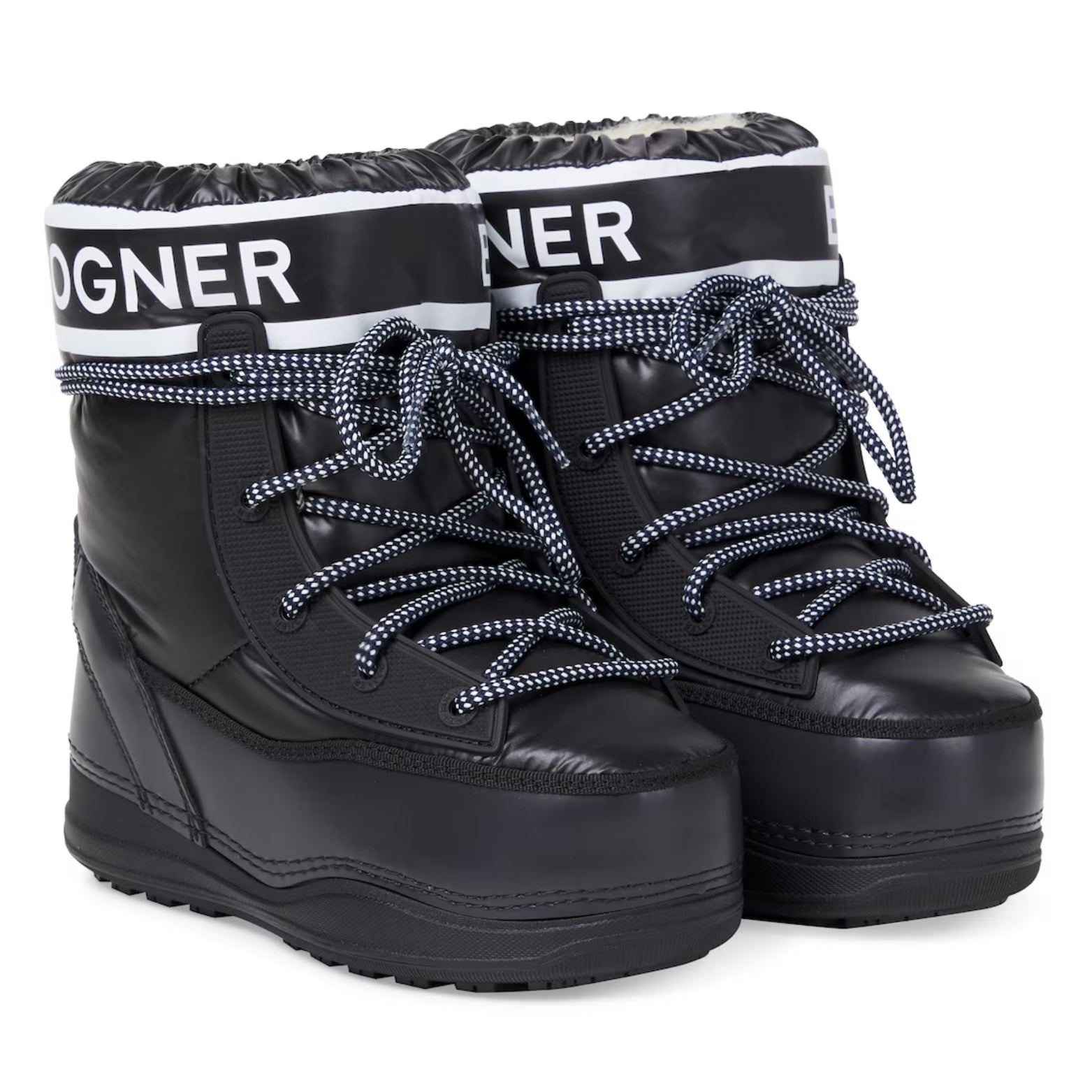 Bogner Kids’ skiwear keeps little ones comfy and cozy as they discover the magic of the mountains for themselves. The La Plagne snow boots feature a lace-up silhouette, printed logos, and chunky lug soles for enhanced grip.