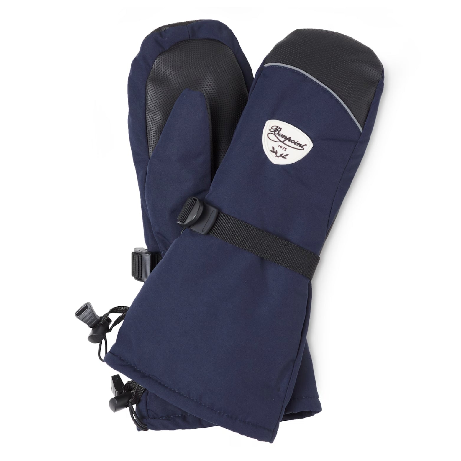 Ideal for ski vacations, these mittens are waterproof and breathable. They tighten at the wrist with elastic and a contrasting strap.