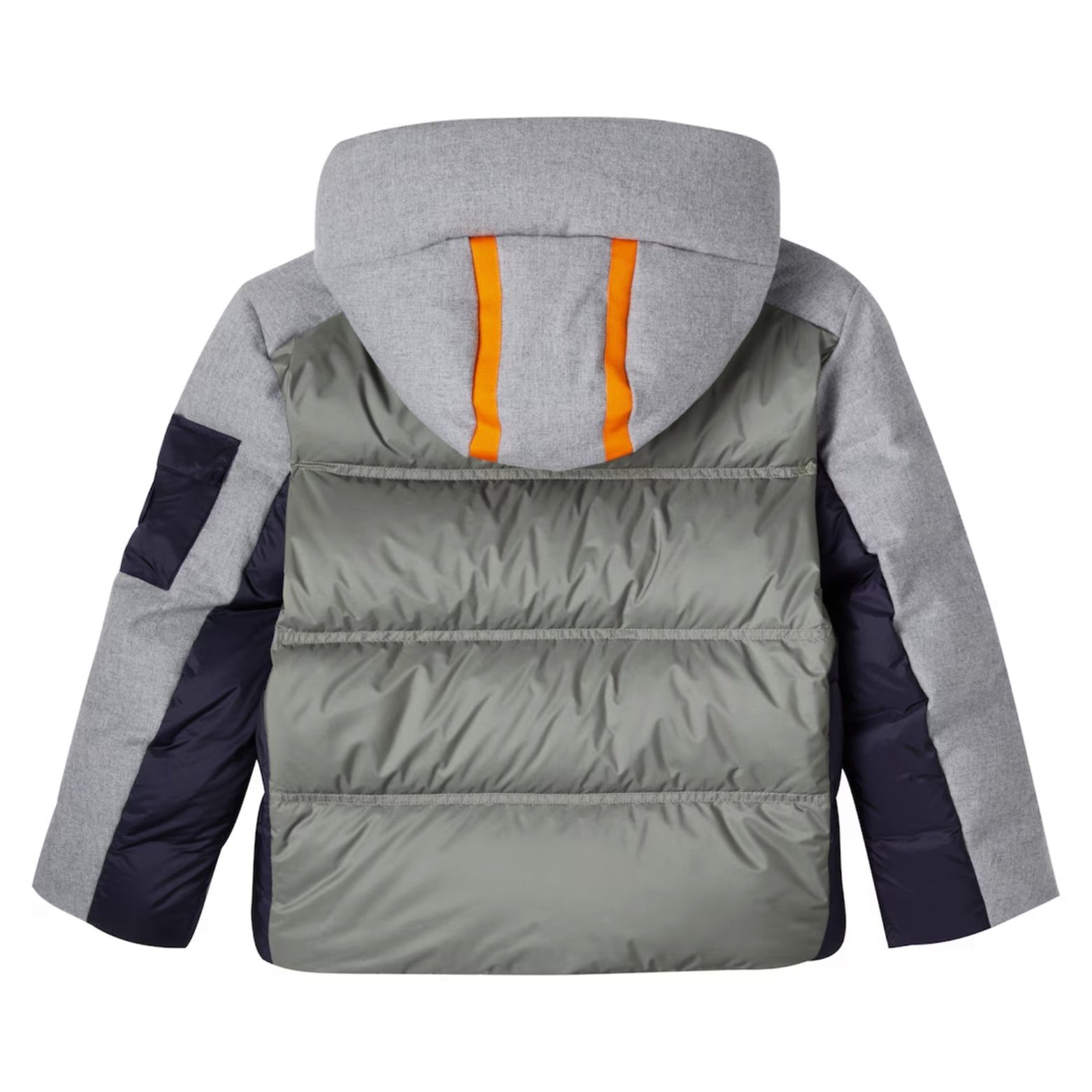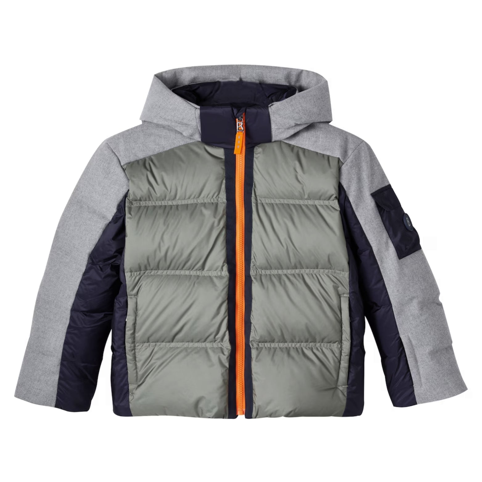 The Pablo down ski jacket from Bogner Kids is ready for cold-season outdoor adventures. This padded design features a bold camouflage print, a detachable hood, practical pockets, and a classic front zip closure.