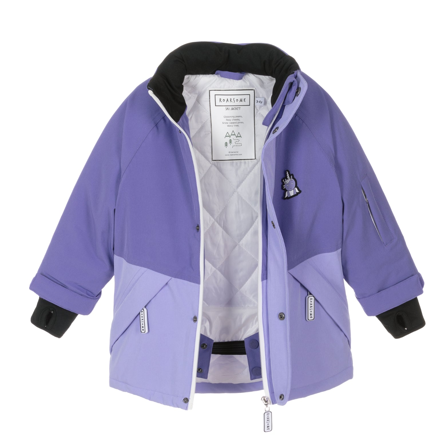 Introducing unicorn Parka Ski Jacket in Purple by Roarsome. Perfectly tailored for the youngers ready to conquer the chills with elegance and verve. Key features include: