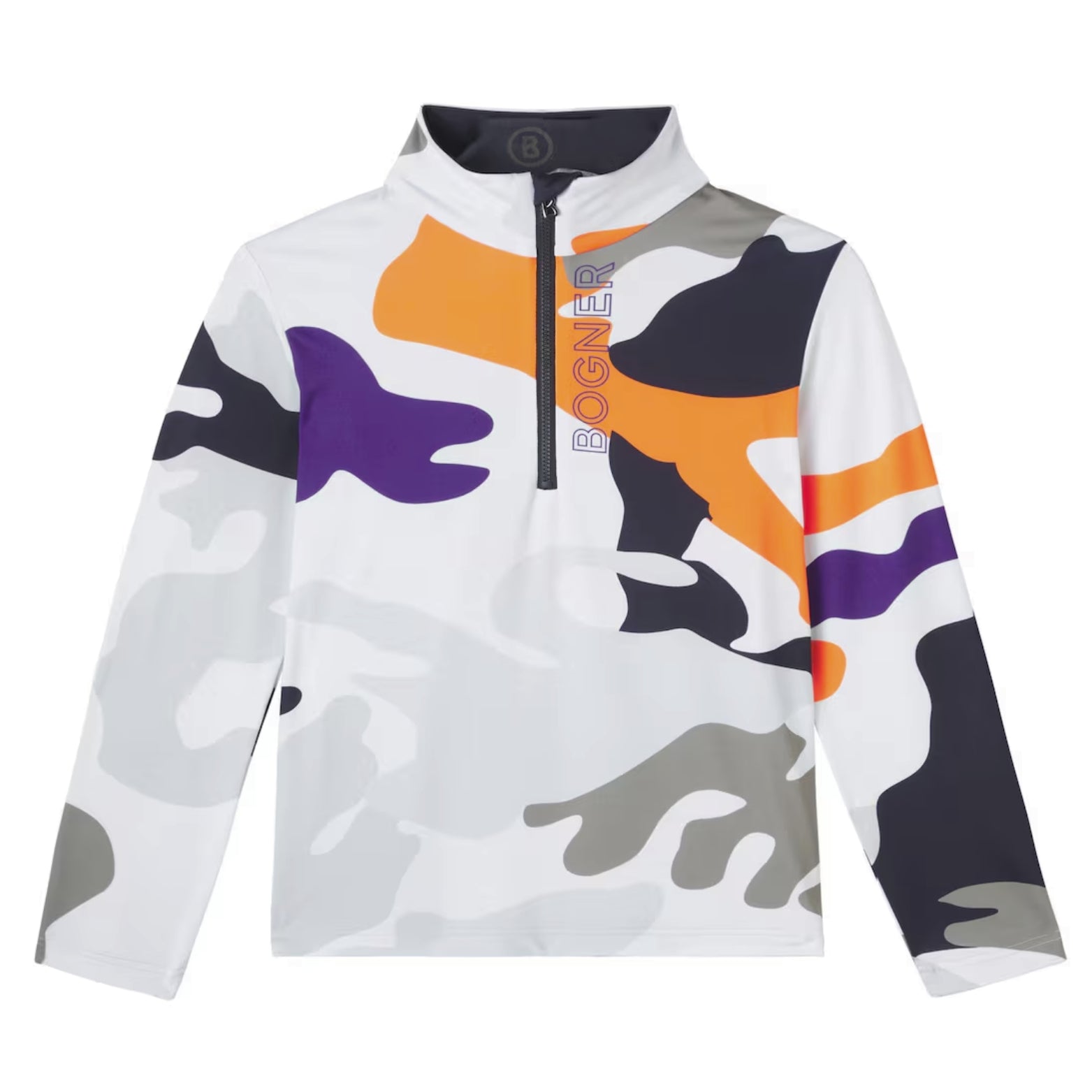 Your little one will stand out on the slopes with the Chris sweatshirt by Bogner Kids. Crafted from technical fabric, this camouflage style features long sleeves, a mockneck, the brand's logo, and a half-zip closure.