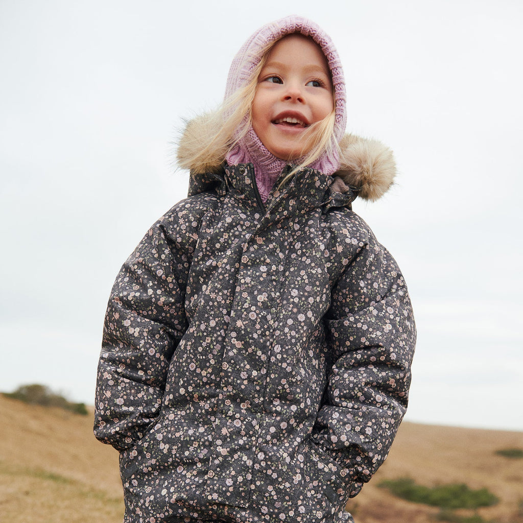 Keep them cozy and comfortable in the snowsuit from Wheat. The design features a plush hood for extra warmth and a partially zipped closure to keep the warmth in.