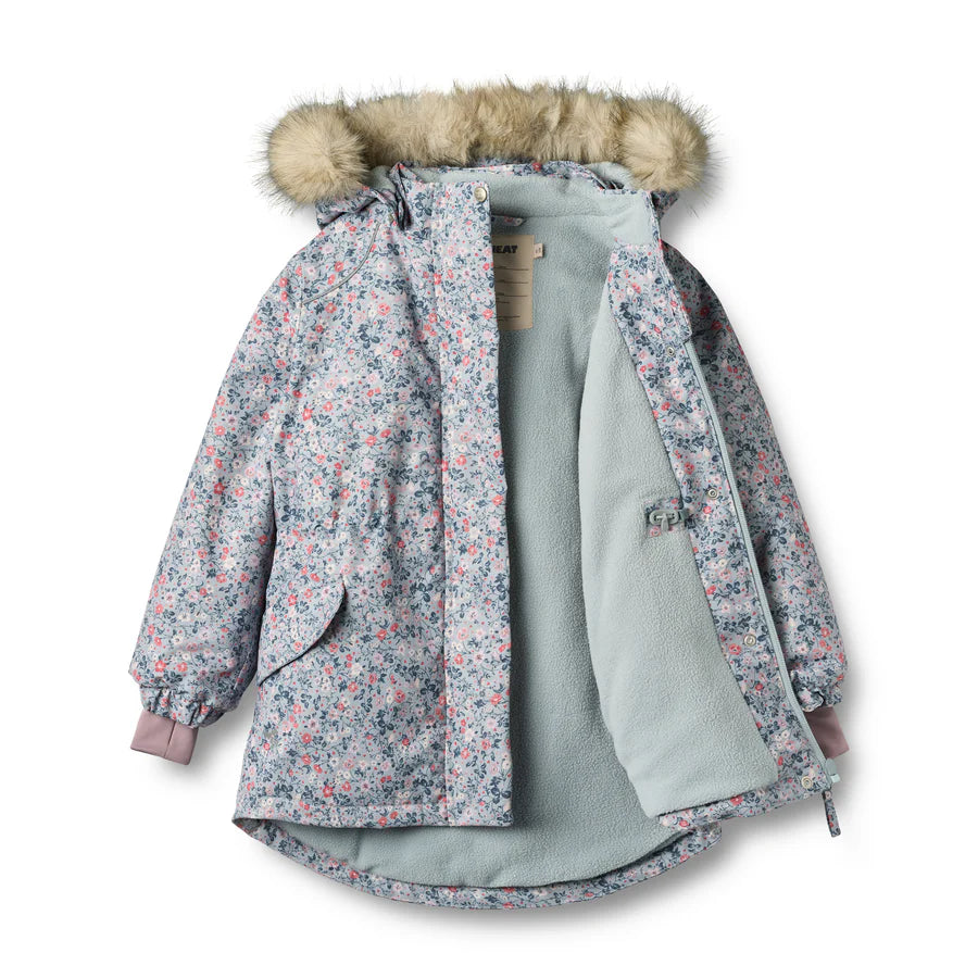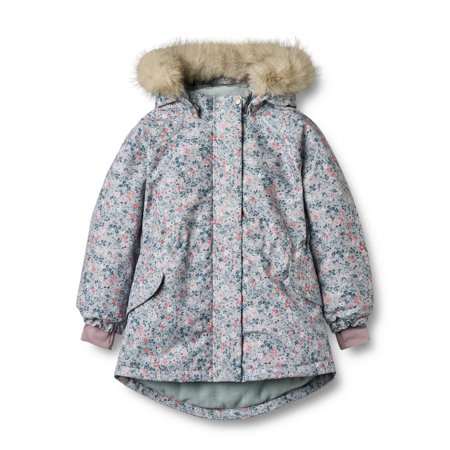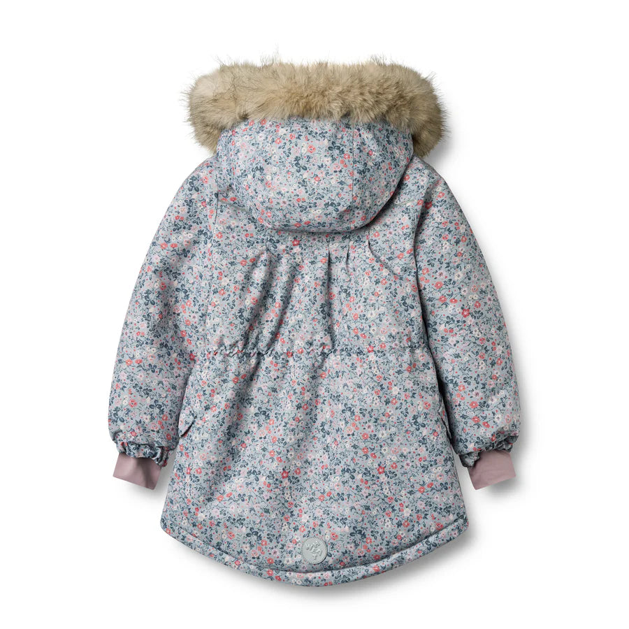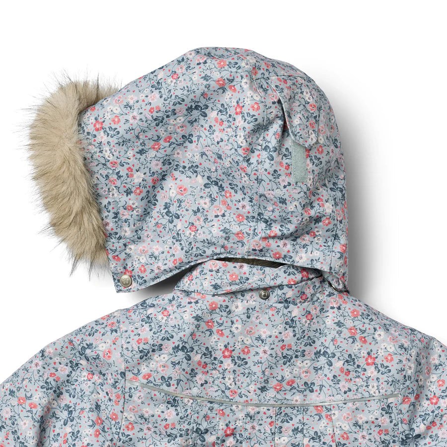 Cozy and cute, the jacket from Wheat gears up growing style enthusiasts for the cold. The design is covered in an all-over floral print and has a plush trim around the detachable hood.