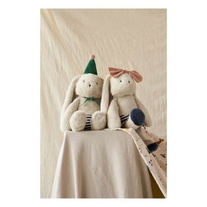 - A velvety-soft rabbit teddy with festive clothes and a playful bow is designed to be a lifelong companion. Made from 100% GRS-certified recycled polyester, the rabbit BABETTE is perfect for cuddles. With sweet embroidered details and a shape that sits or lies down, it is a timeless gift for little ones.