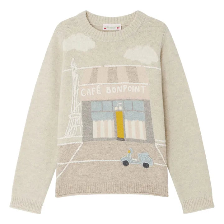 - Rich in detail, the Jodora sweater for girls features original Café Bonpoint embroidery. The base and cuffs of this wool model feature a rolled finish.
