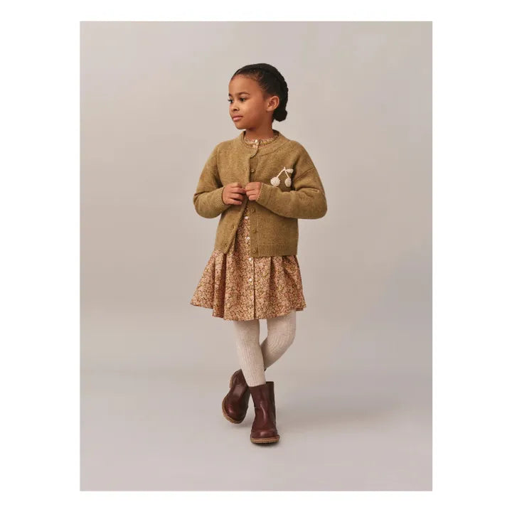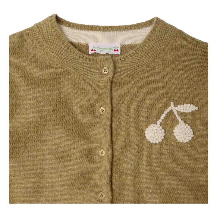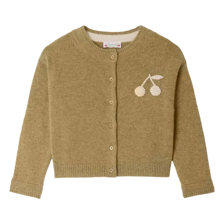 - The cardigan for girls draws its personality from the large cherry embroidered in contrast on the chest. This plain cashmere model is a guarantee of everyday comfort. Certified cashmere guarantees animal welfare Round collar Ribbed finishings