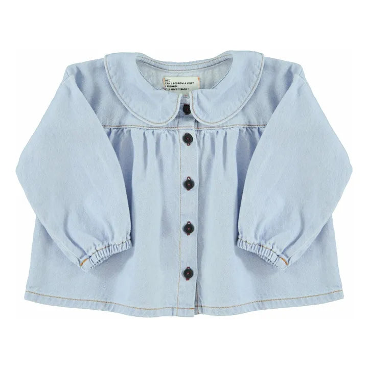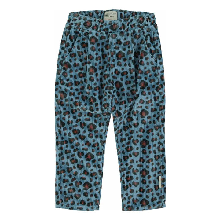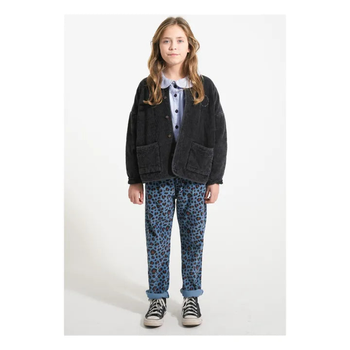 Denim Blouse Claudine Collar & Blue Corduroy Leopard Pants