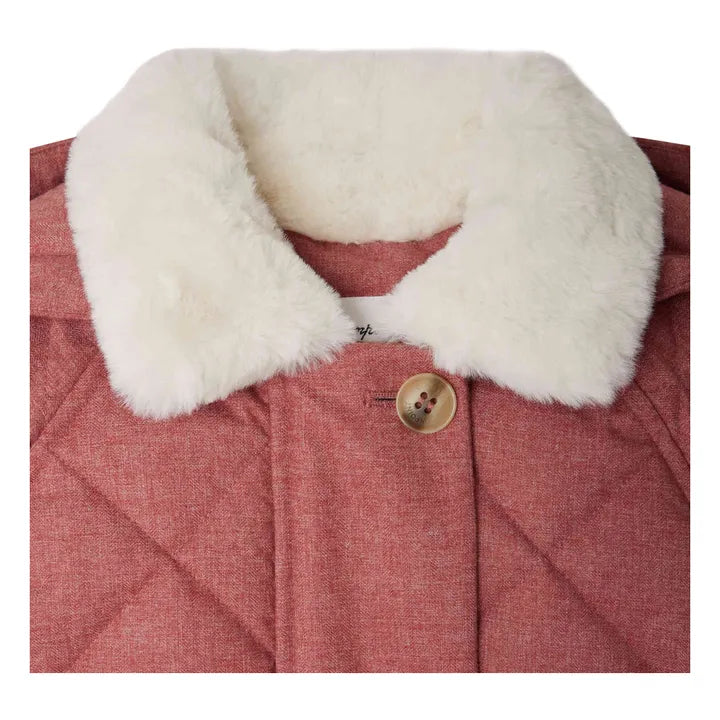 The Janice down jacket from Bonpoint keeps your child cozy and stylish during cold-weather seasons. This design featured a wide collar with a plush trim, removable hood, subtle branding, and timeless diamond quilting for elegance and warmth.