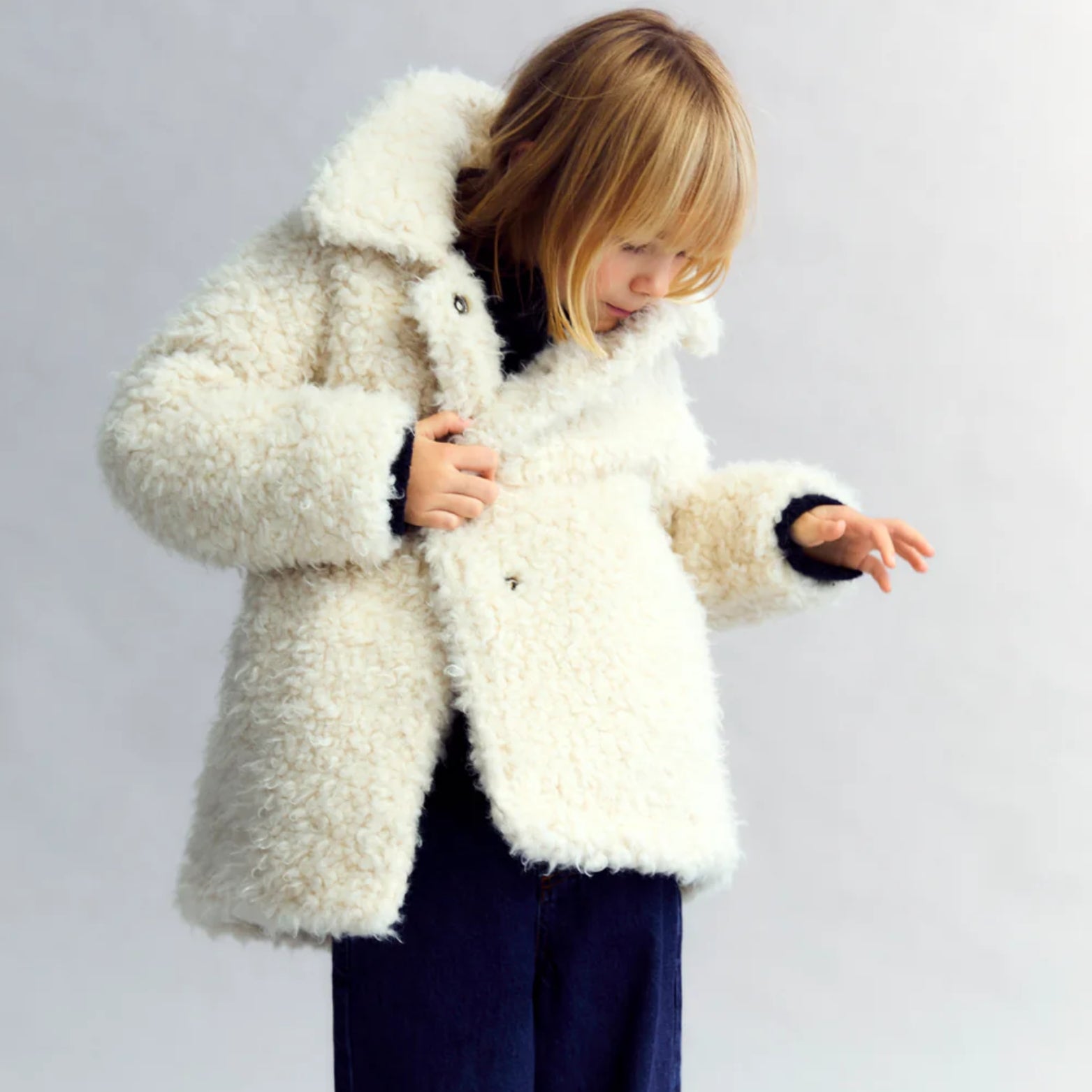 The New Society prioritizes local, conscious-driven production and the use of natural and recycled materials. The Ninette coat is crafted from cozy faux fur and features snap-buttoned closure at the front.