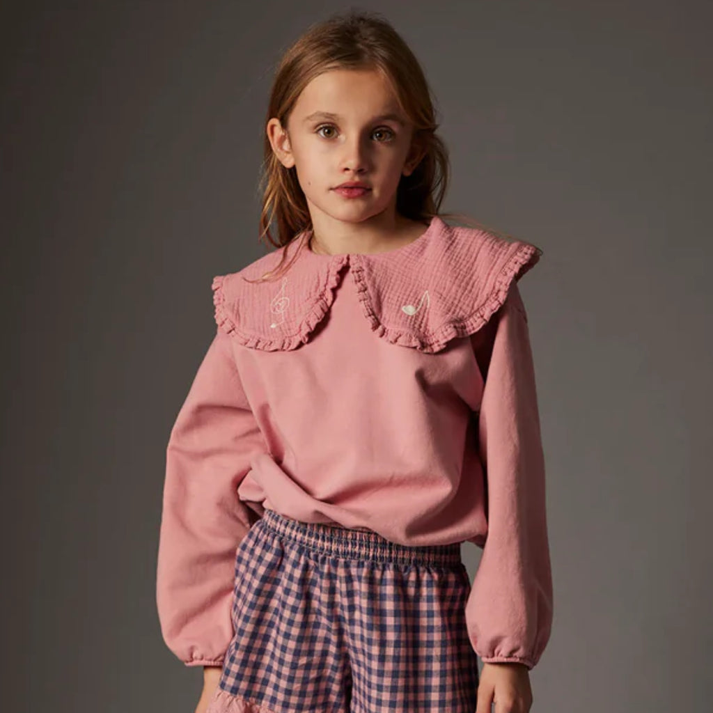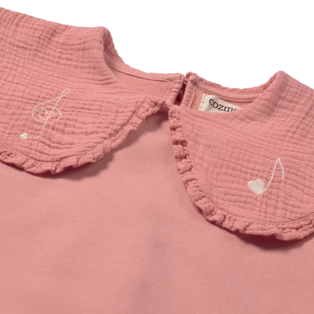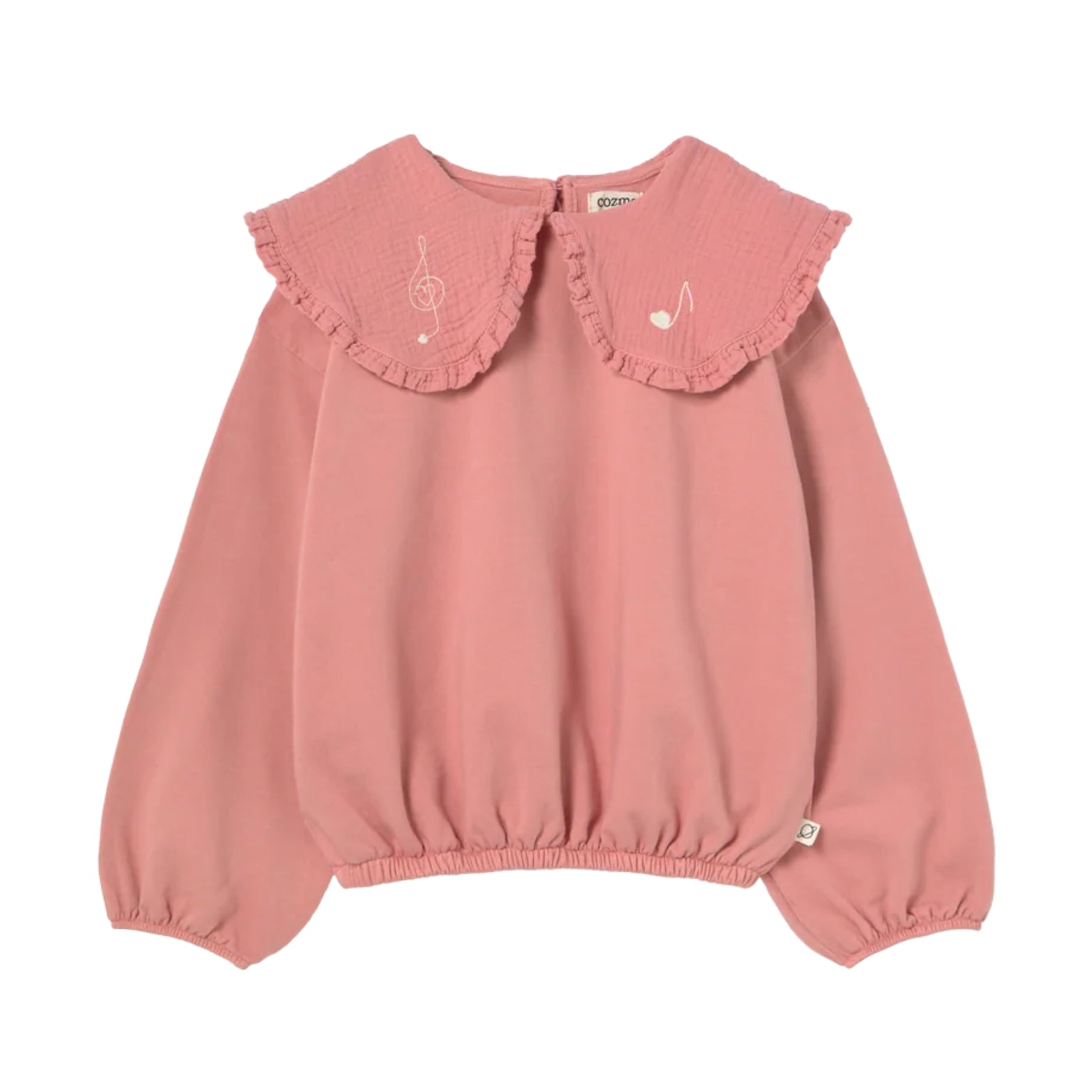 The Genoa sweatshirt from Cozmo is crafted from soft cotton-blend fleece and showcases an adorable oversized collar with delicate ruffled trim. Featuring a subtle musical print, this design is finished with elasticated cuffs and hem.