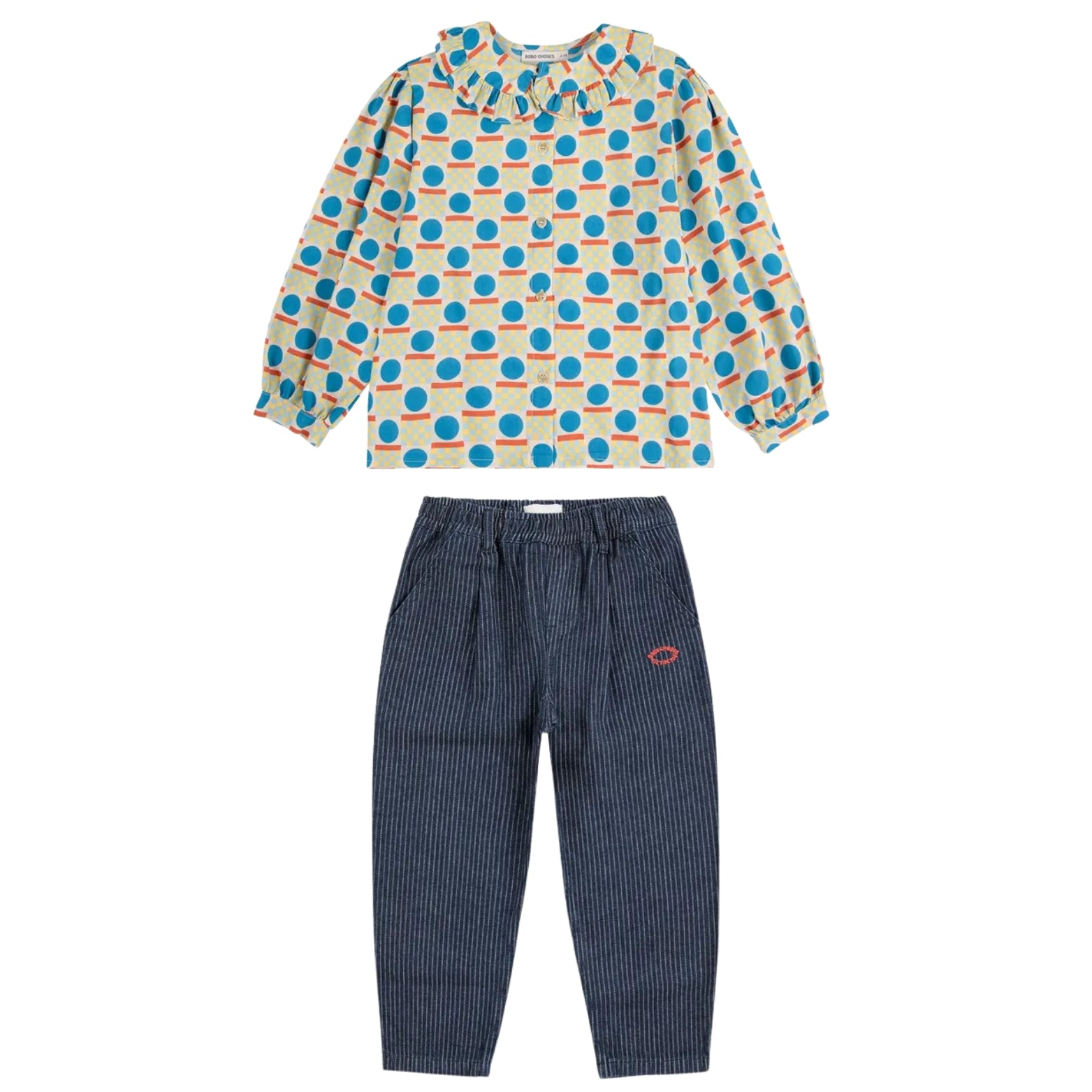 Geometric Organic Cotton Blouse & Striped Organic Cotton Balloon Jeans