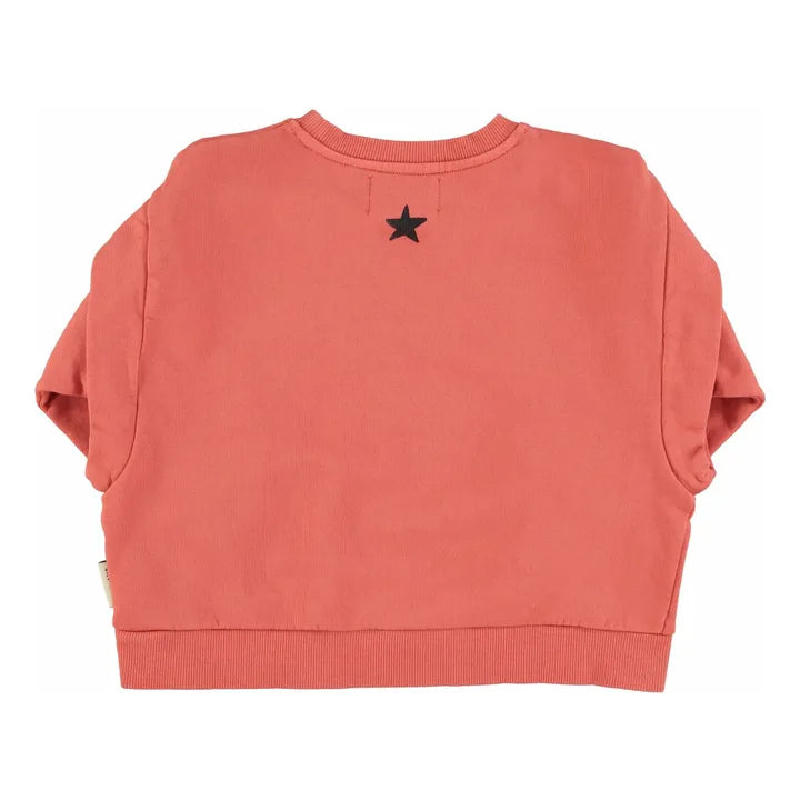 - Sweatshirt with frontal print and a little black star at back. Fitting details. Carded organic cotton fleece. Ribbed cufs. Baby sizes have buttons on the shoulders.