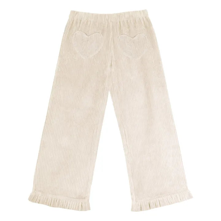 Hearty Ruffle Corduroy Organic Cotton Pants | Ecru