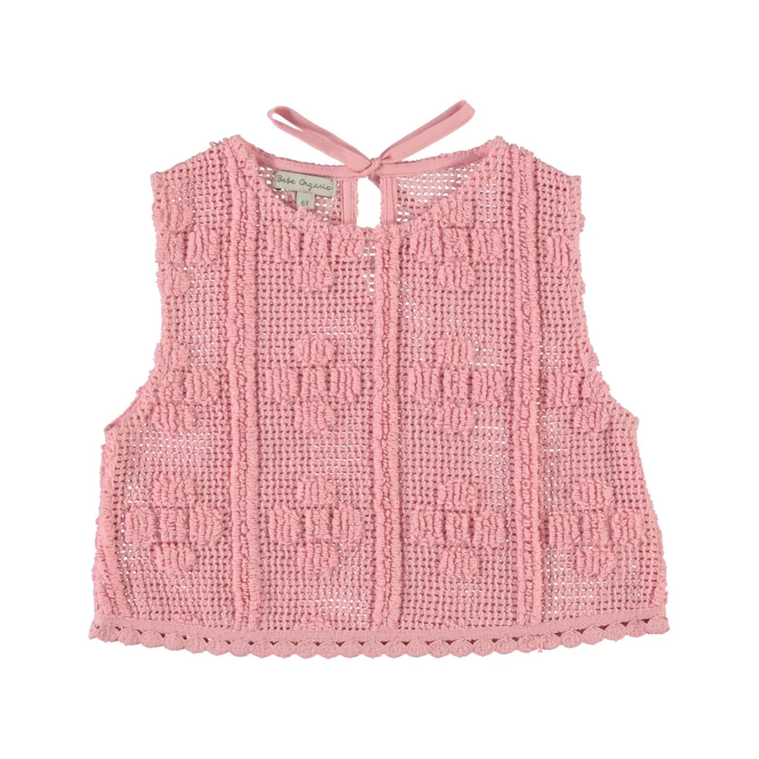 Introducing the cutest Inez top in the softest terry-cotton fabric with a geometrical flower motif. A simple sleeveless top with ties on the back is a perfect match for Inez shorts. A must-have for this spring/summer season.