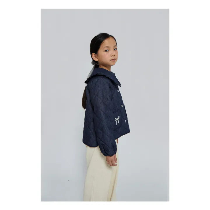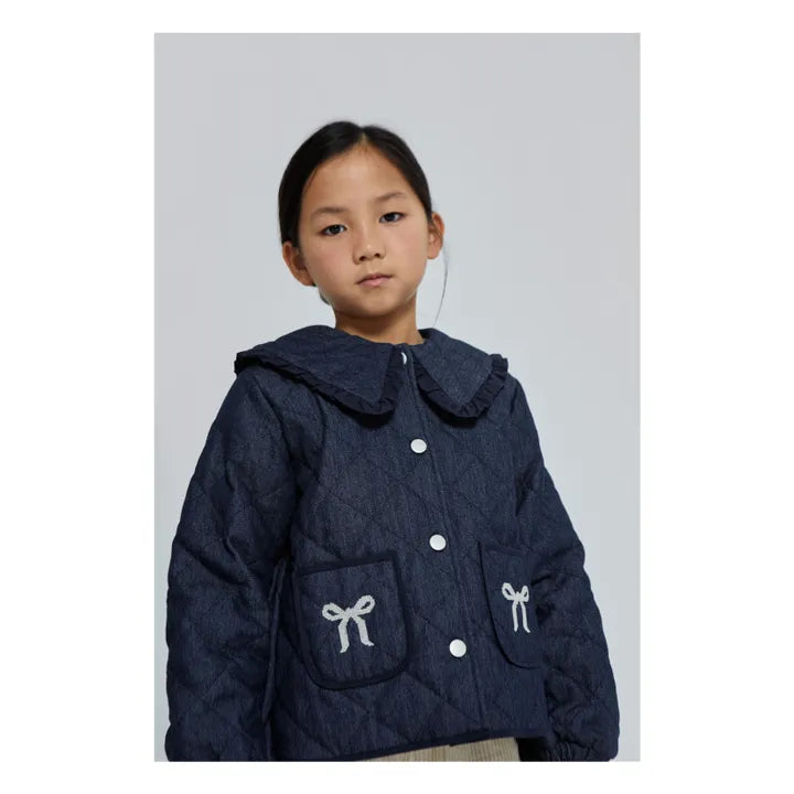 • Create a stylish cocoon with this quilted denim jacket. Embellished with dainty ribbon embroideries, it offers an elevated alternative to the classic coat.
