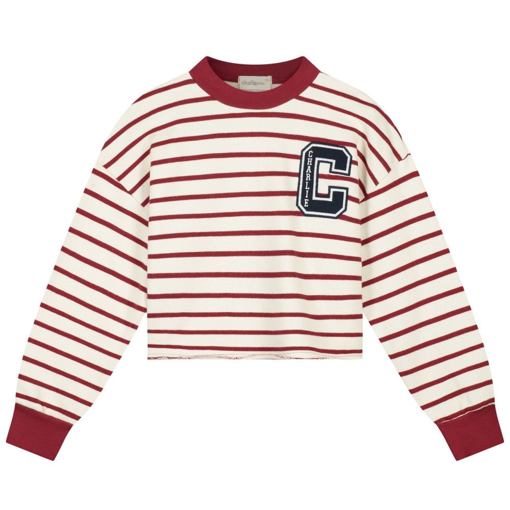 Lux Sweater Stripes Bordeaux Ecru - 4Y is backordered and will ship as soon as it is back in stock.