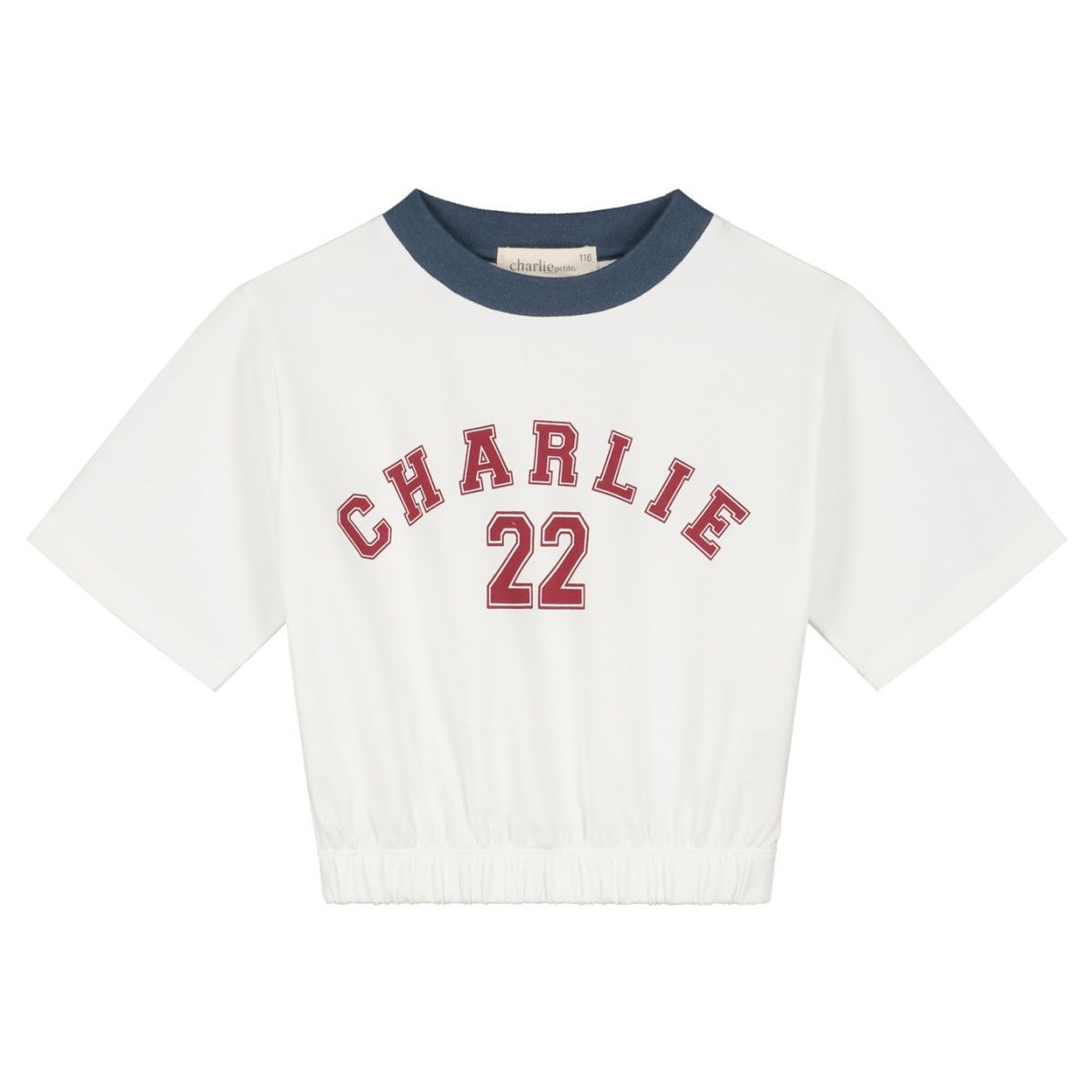 Made from 100% cotton for all-day comfort, it features a fun Charlie print and comes in ecru or dark blue stripes. Perfect for layering or styling on its own for a casual, modern look.