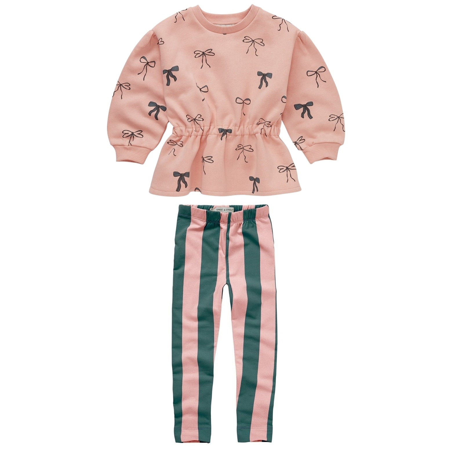 Peplum Sweatshirt Bows & Block Stripe Leggings