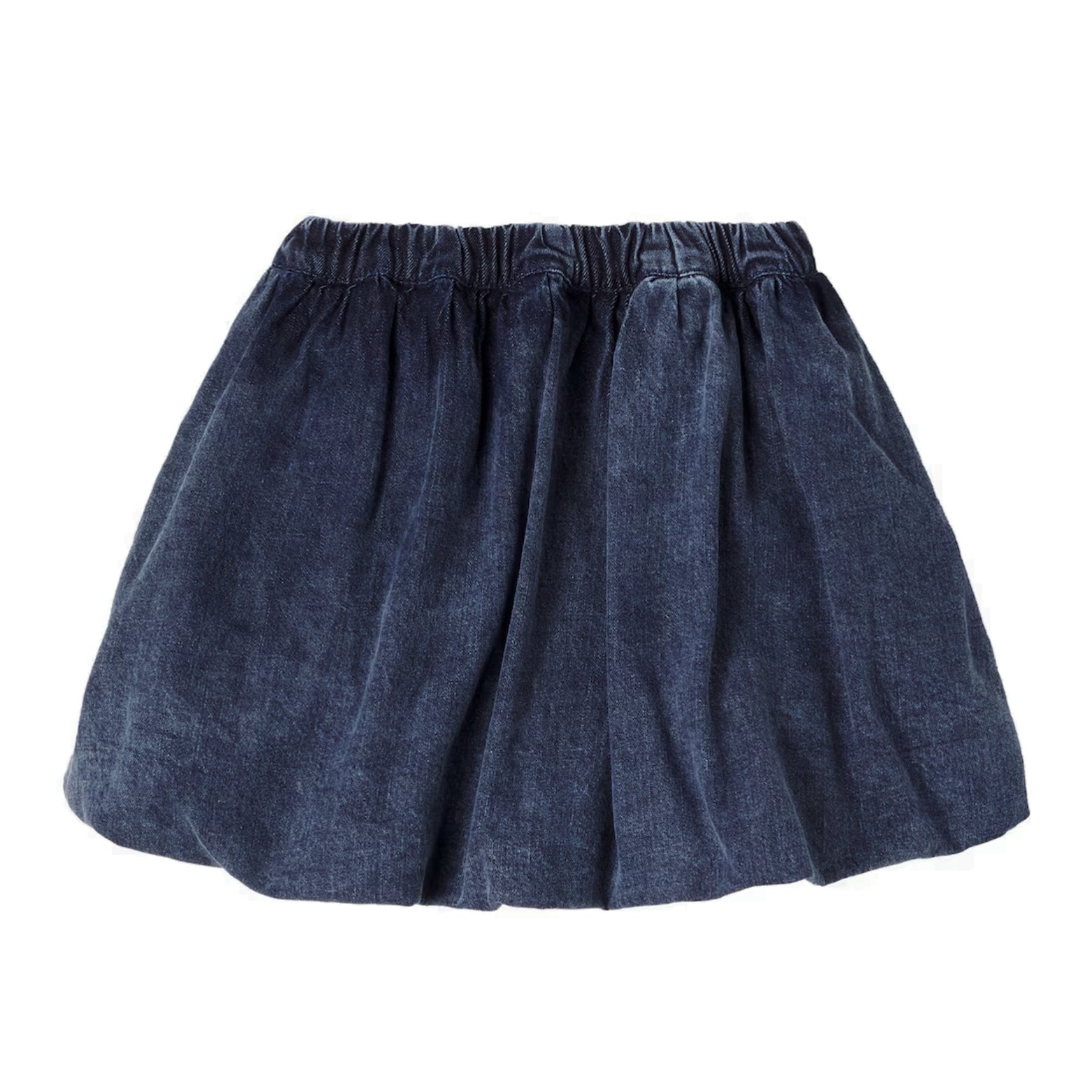The New Society prioritizes local, conscious-driven production and the use of natural and recycled materials. Crafted from denim, this bubble-style skirt features charming all-over pleating with a comfortable elasticated waistband.