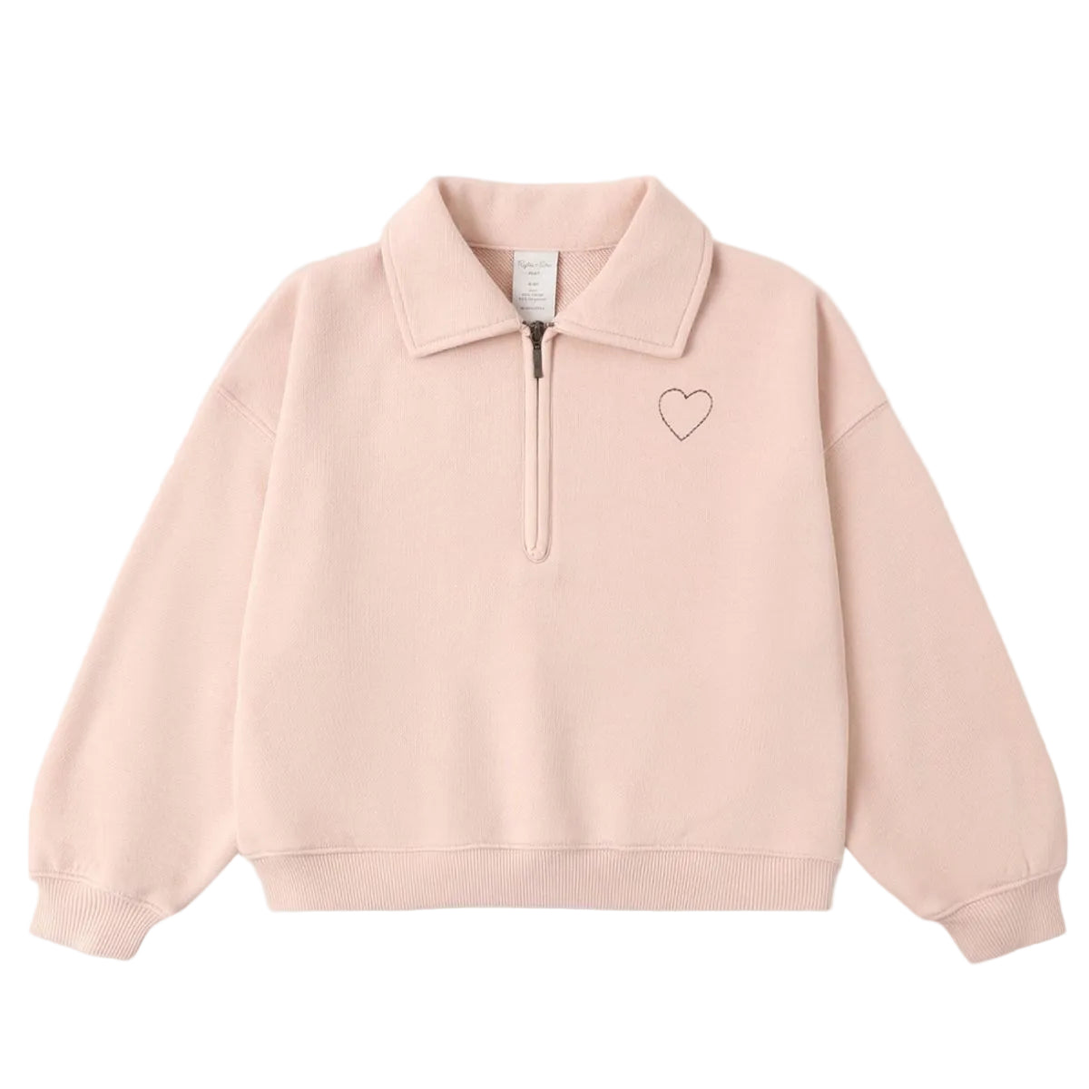 Stay comfy in our pullover sweatshirt featuring a cute quarter zip and collar, and an elastic waistband for a snug fit. Pairs perfectly with our Wide Leg Sweatpant. Cozy wide leg relaxed fit sweatpants featuring a drawstring and elastic waistband and front pockets. Featuring our embroidered 'heart' spot print on our 'blush' hue. Care: Machine wash cold. Tumble dry low. Made of 60% cotton, 40% polyester.