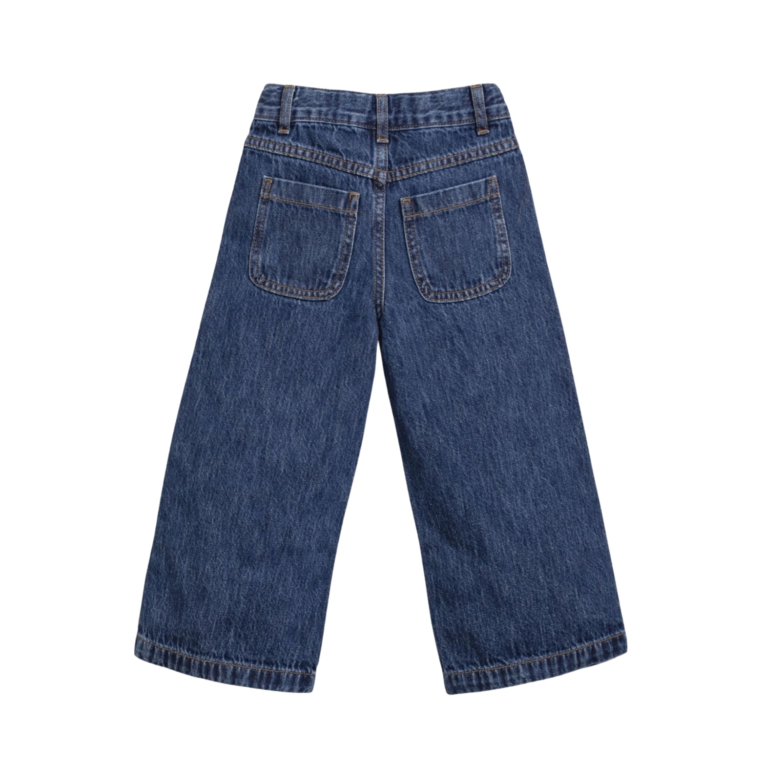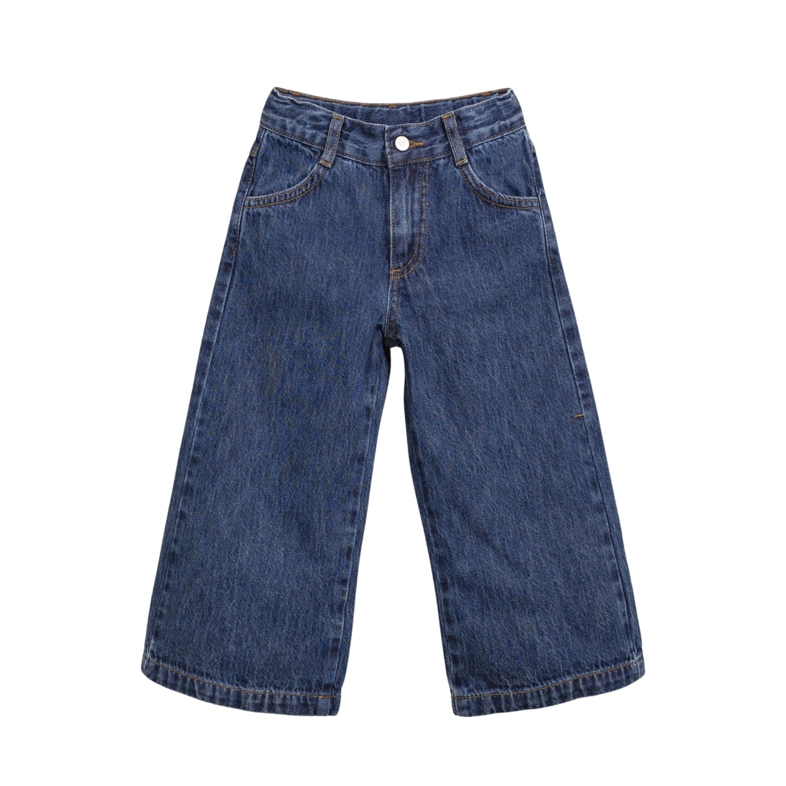 These denim trousers are made of cotton fabric, in classic blue color. They are a straight-leg model, featuring a zipper fly and a nickel-free metal button, with front and back pockets