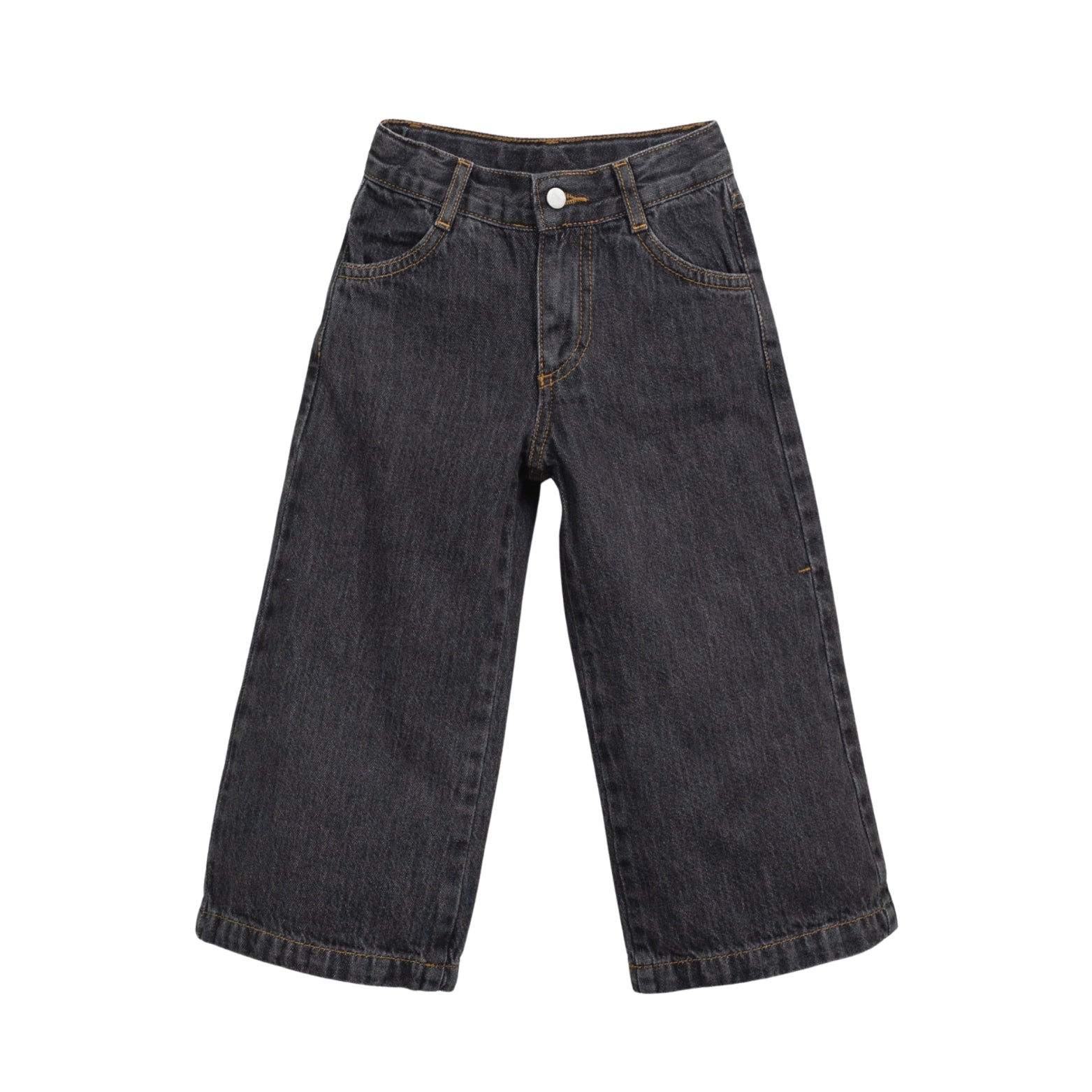 These denim trousers are made of cotton fabric, in Dark color. They are a straight-leg model, featuring a zipper fly and a nickel-free metal button, with front and back pockets