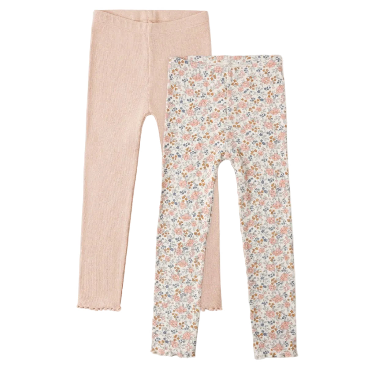 Our Ribbed Leggings are a cute way to stay comfortable this spring. Designed with a lettuce edge at the ankle for added style. Set of 2. Featuring our 'flower field' print and our 'heathered blush' hue. Care: Machine wash cold. Tumble dry low. Made of 100% cotton.