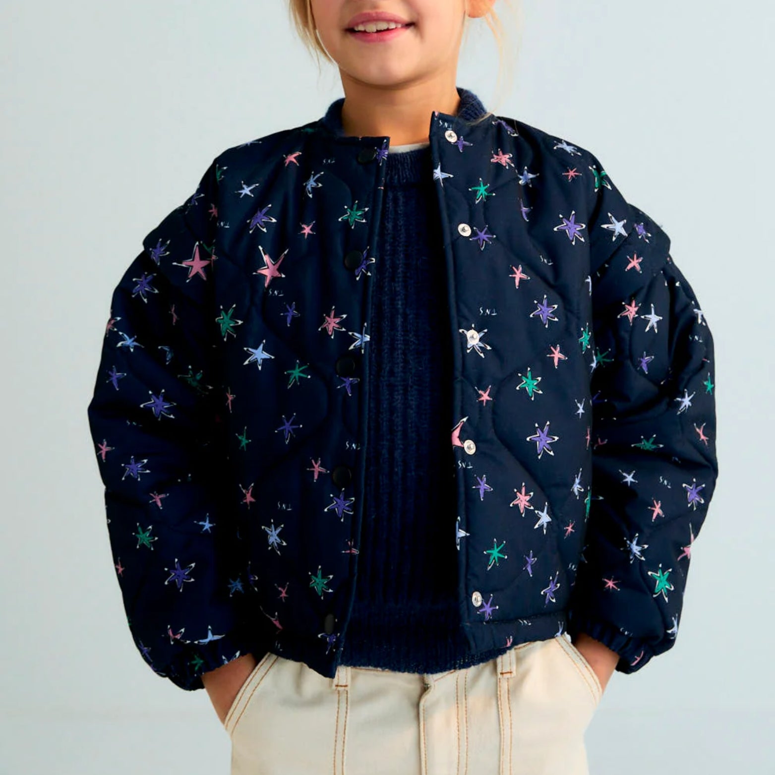 Ensure they stay warm and stylish with pieces like the Althea jacket from The New Society. This quilted style is padded to ensure insulation and features a lovely star motif throughout.