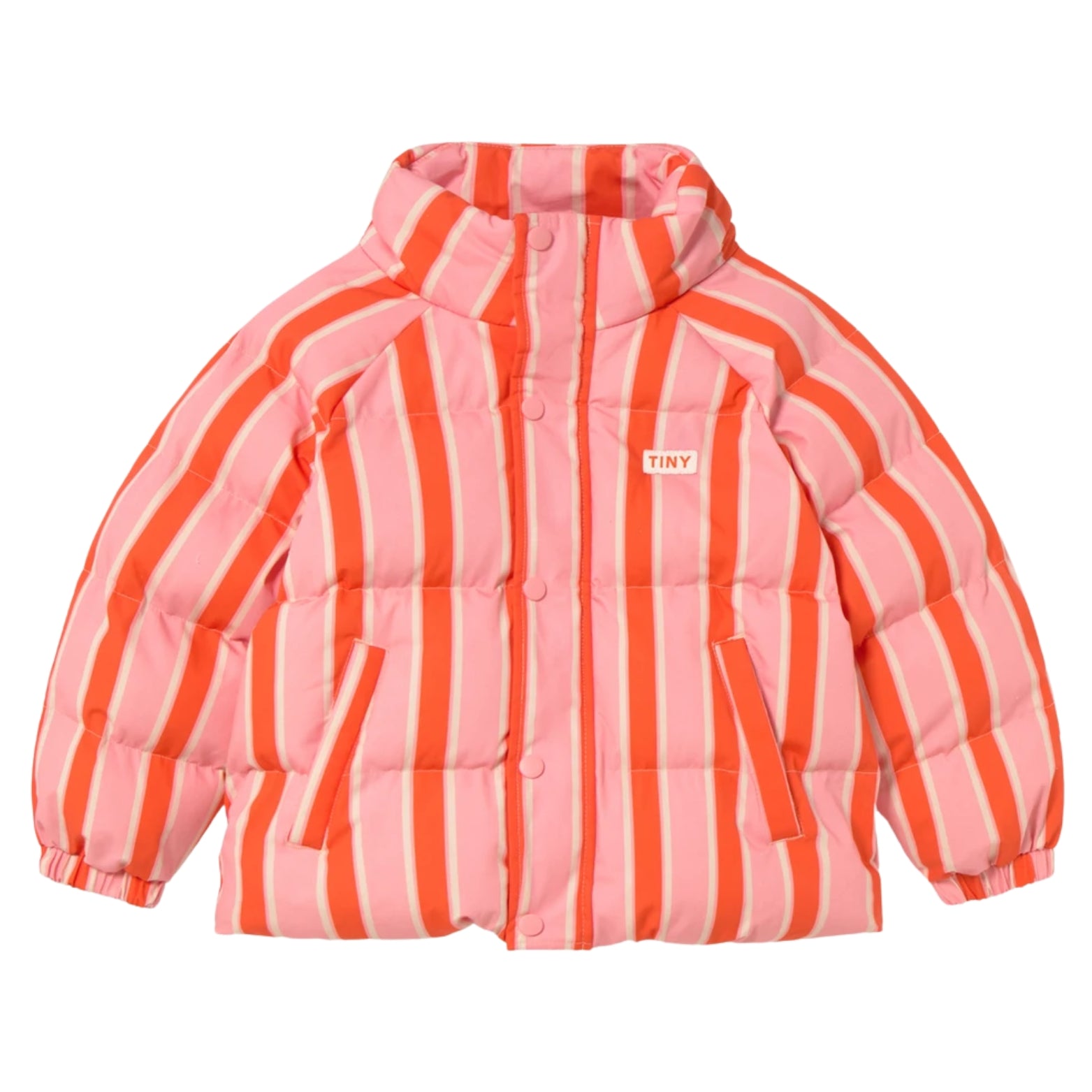 Tinycottons embodies the bold, colorful spirit of its Barcelona base through playful, high-quality kidswear. This jacket features welt pockets, a zipped and snap-buttoned front, and a charming all-over striped print.