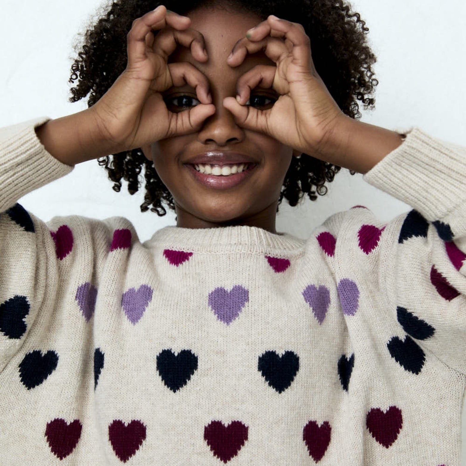 The New Society prioritizes local, conscious-driven production and the use of natural and recycled materials. Defined by a charming heart motif, the Cora sweater is made from a soft wool blend with a touch of cashmere.
