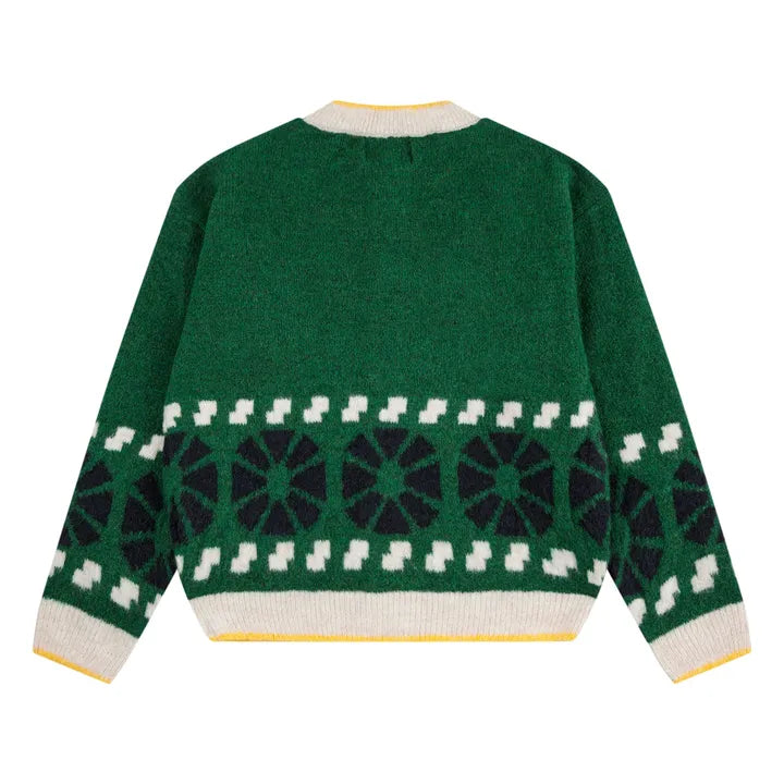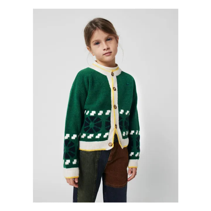 Wool Mix Jacquard Cardigan | Green