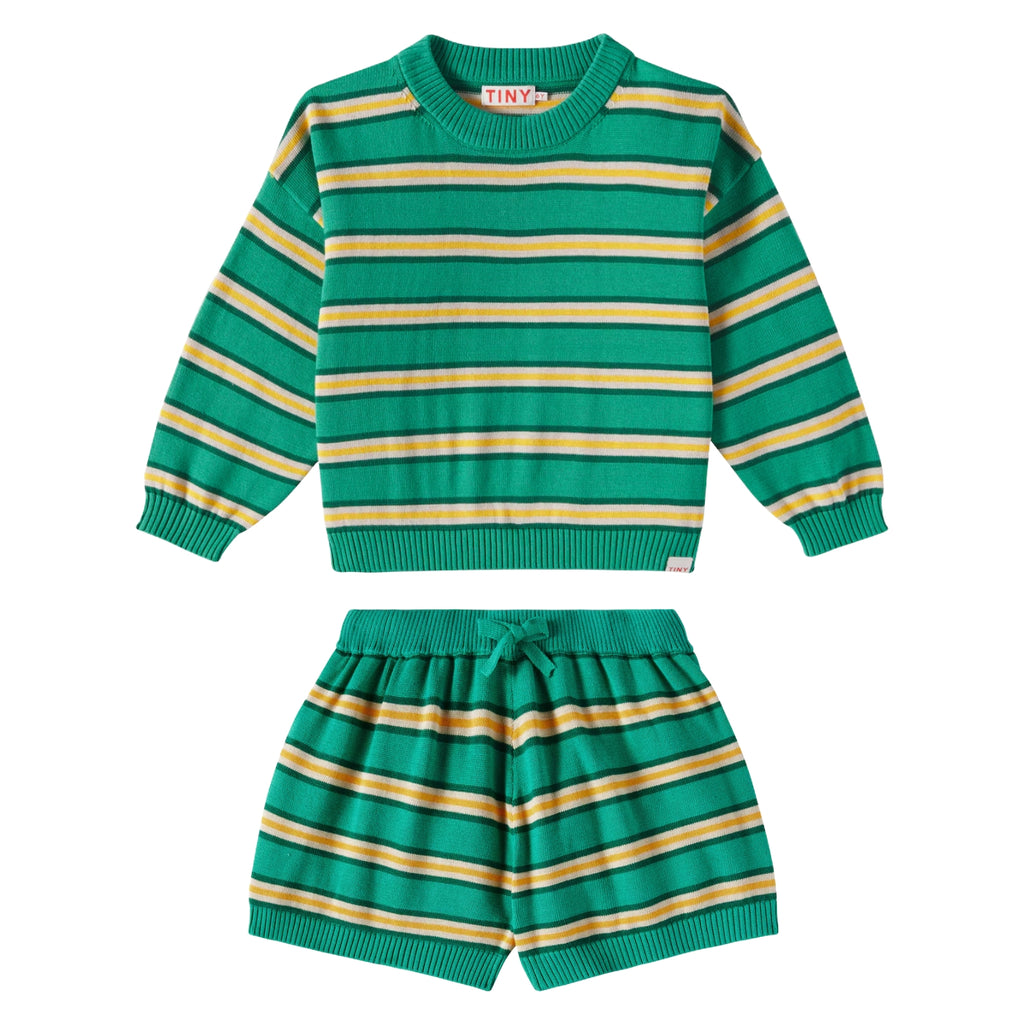 Striped Cotton Terry Sweatshirt & Joggers | Green