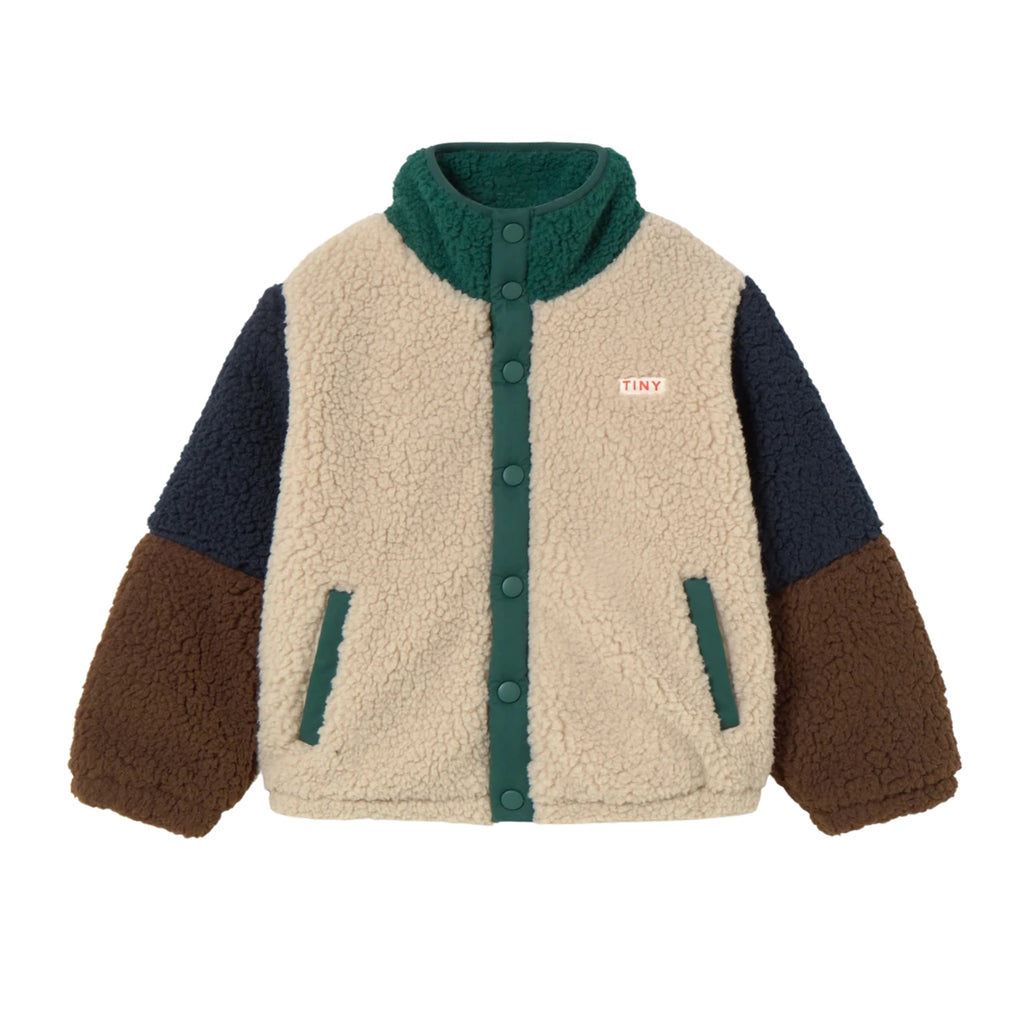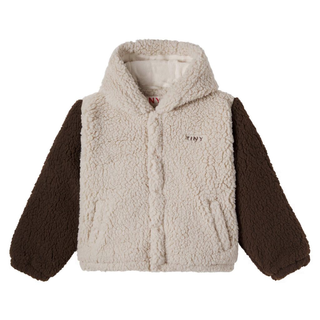 Colorblock Faux shearling Hooded Jacket | Beige Brown