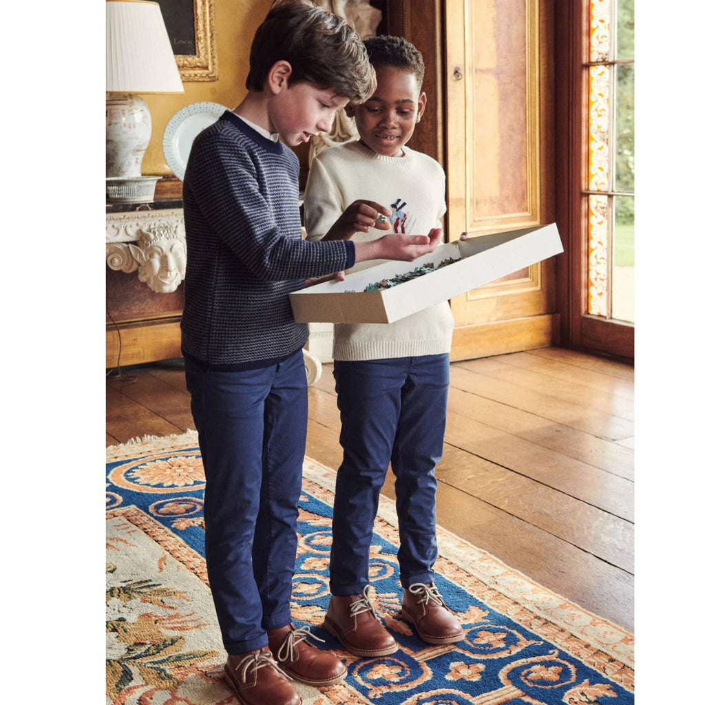 Blue Merino-wool Jacquard Boy Jumper & Navy Chinos