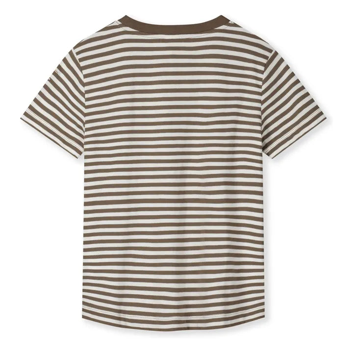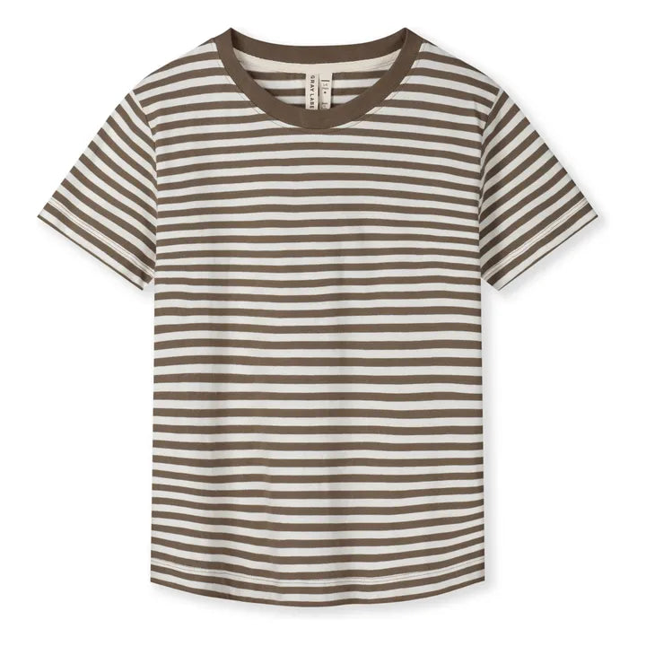 Oversize Striped Organic Cotton T-shirt | Khaki brown