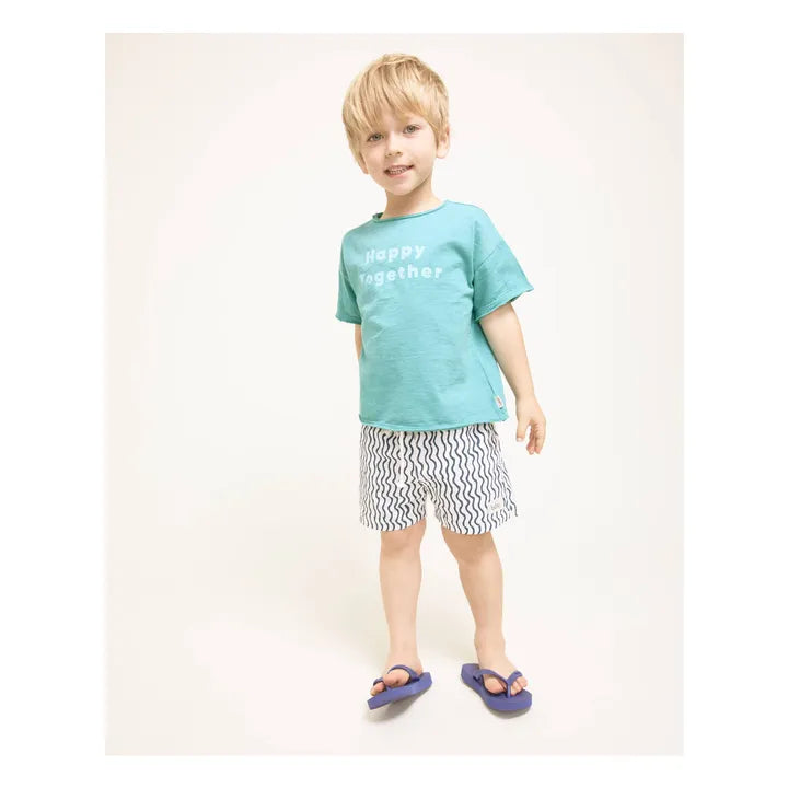 • Organic cotton T-shirt with a happy print on the chest. Round neck. Short sleeves.