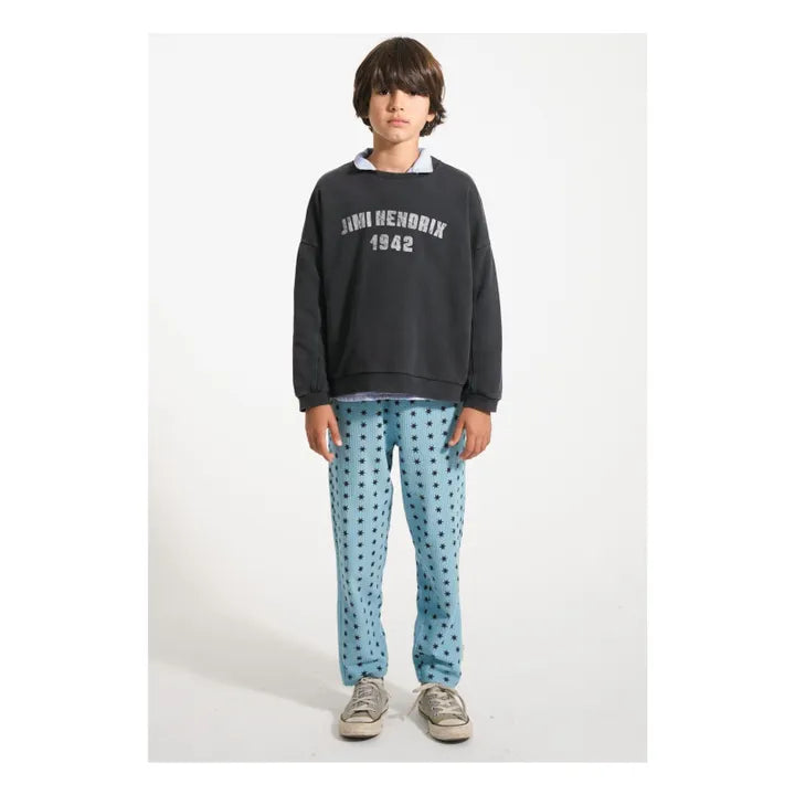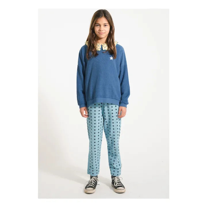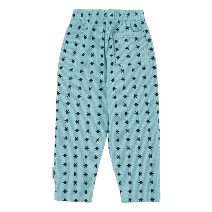 - Jogging pants in textured organic cotton fleece with elastic waist. Lateral and one back pockets.