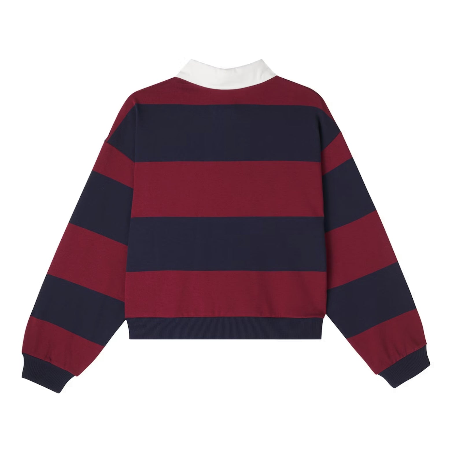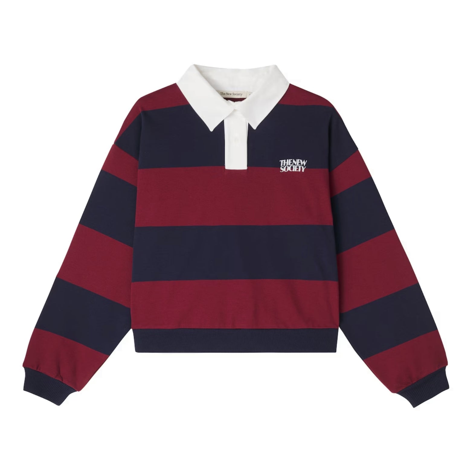 The New Society prioritizes local, conscious-driven production and the use of natural and recycled materials. The Teresa polo shirt features a charming striped pattern with the brand's logo embroidered at the chest.