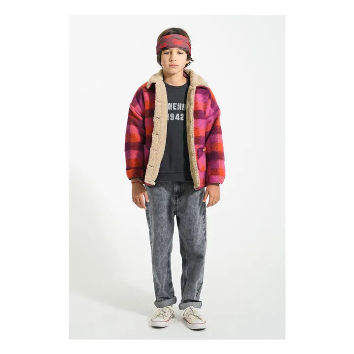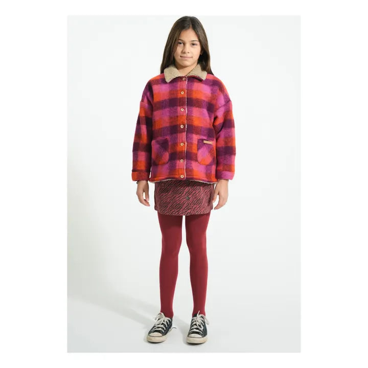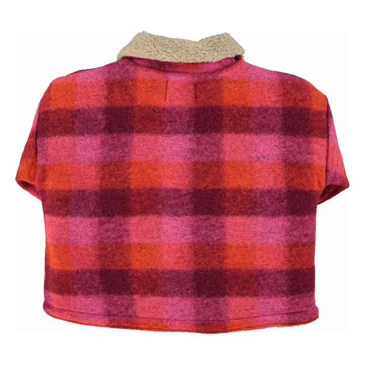 - Warm jacket with collar. Buttons at the front. Patch pockets on the front detailed with leather logo. Faux shearling lining.