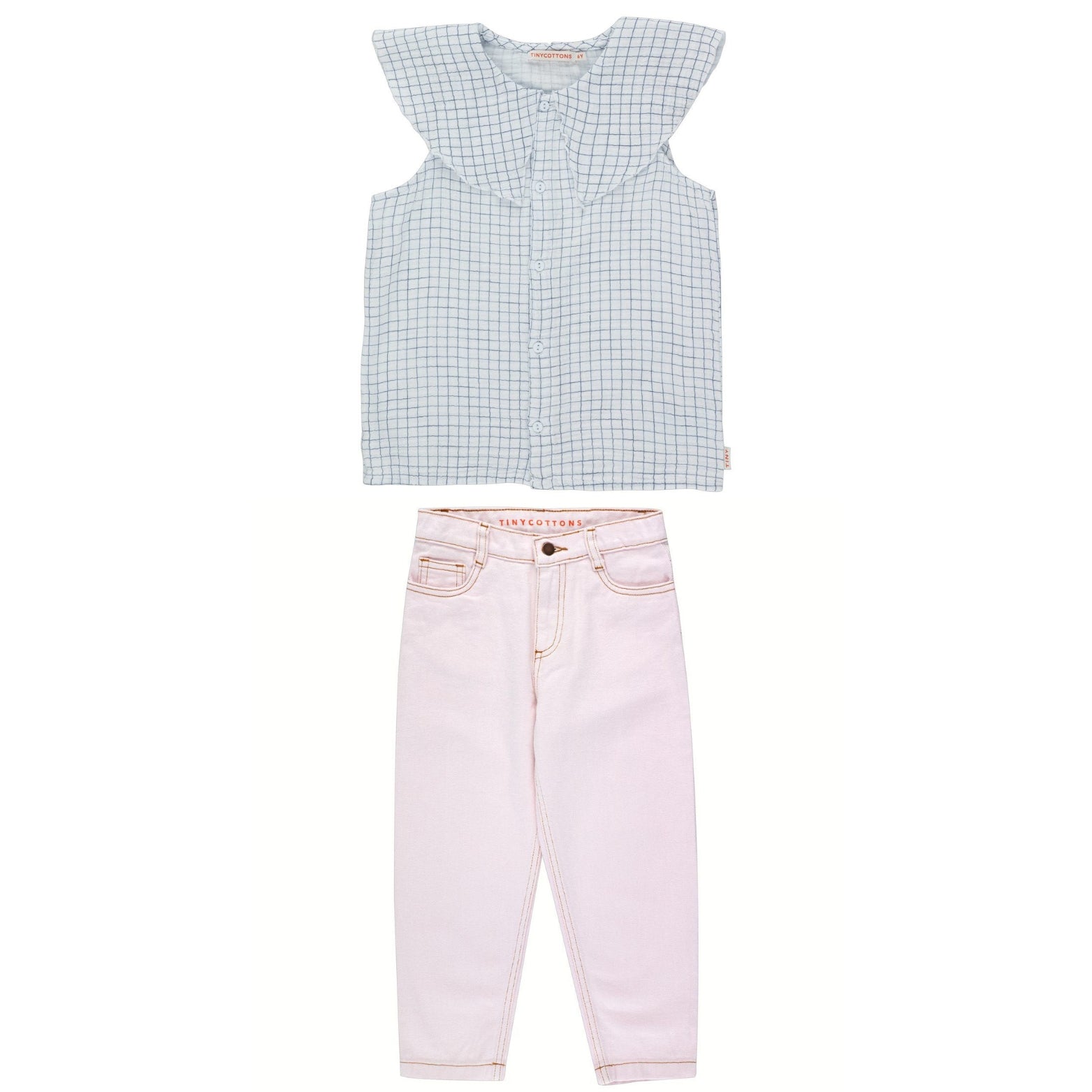 Grid Blouse & Tiny Baggy Jeans