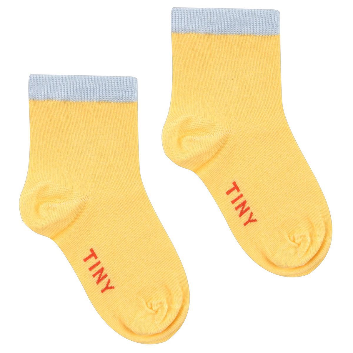 Summer pastel tones matching with the Mediterranean skies. Summer style solid baby socks in canary with pale blue contrast elastic.
