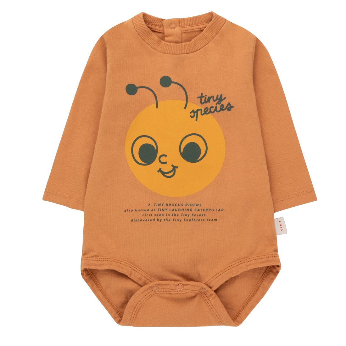 Tiny explorer code: all species are special. TINY SPECIES BODY, honey and dark green print on clay color base.