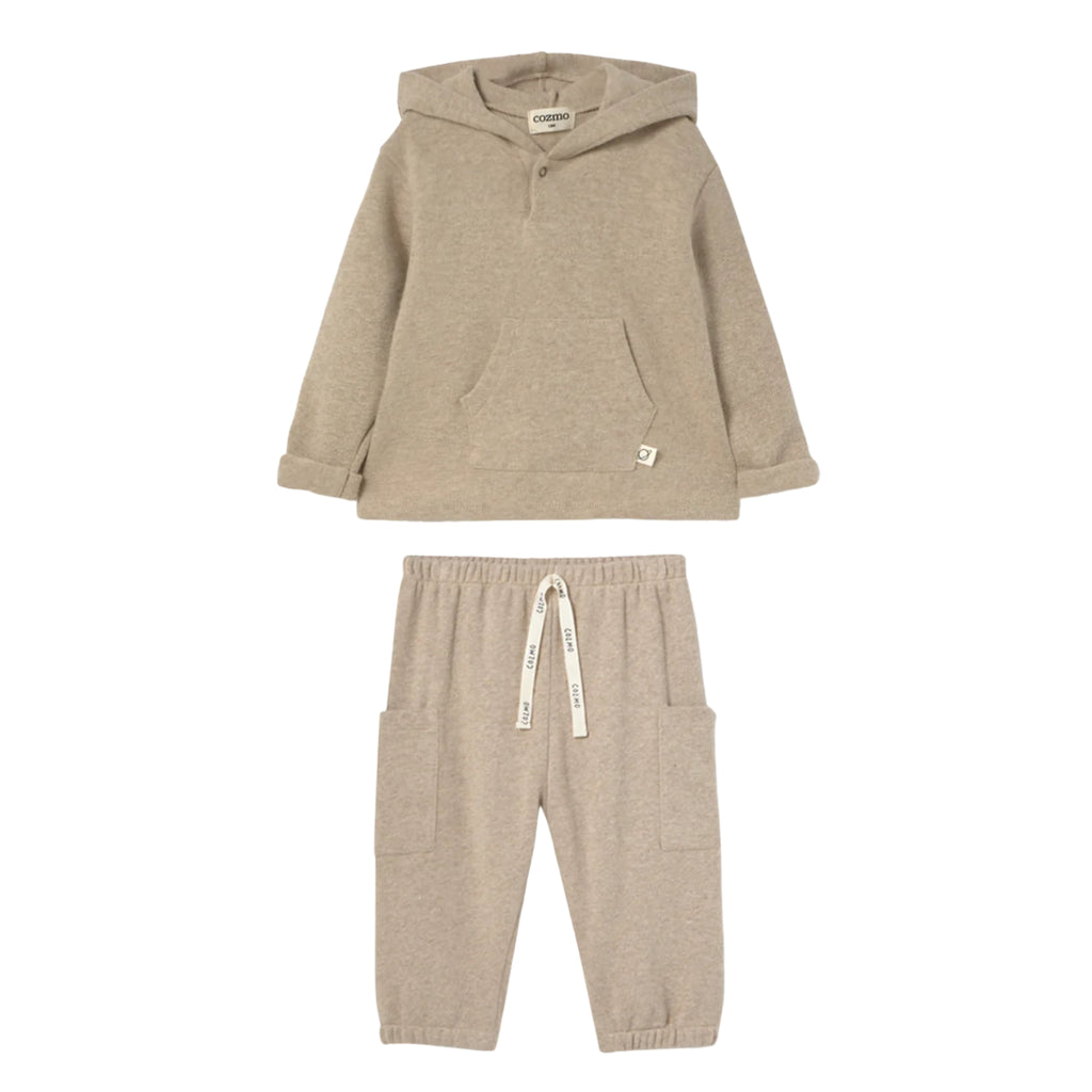 Organic cotton Henley L/Sleeves & Joggers | Ivory Ochre
